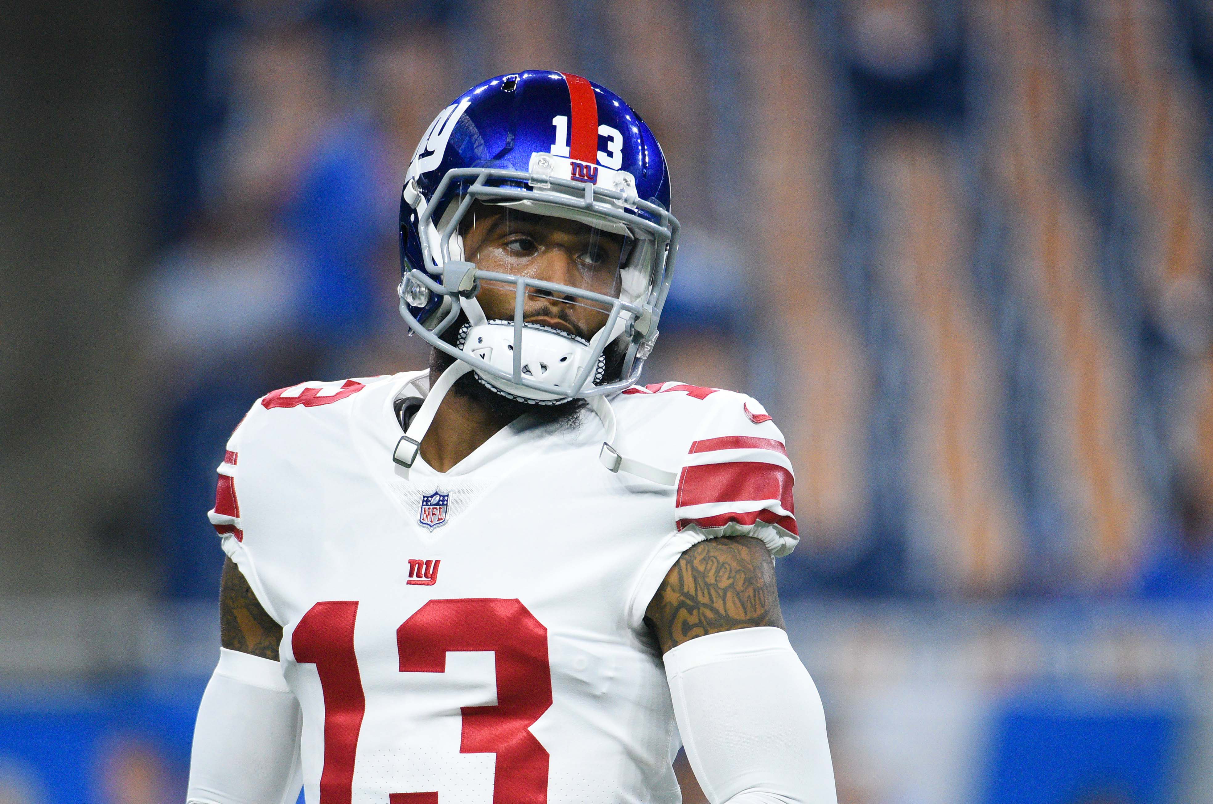 Aug 17, 2018; Detroit, MI, USA; New York Giants wide receiver Odell Beckham (13) looks on before a game against the Detroit Lions at Ford Field. Mandatory Credit: Tim Fuller-USA TODAY Sports / Tim Fuller