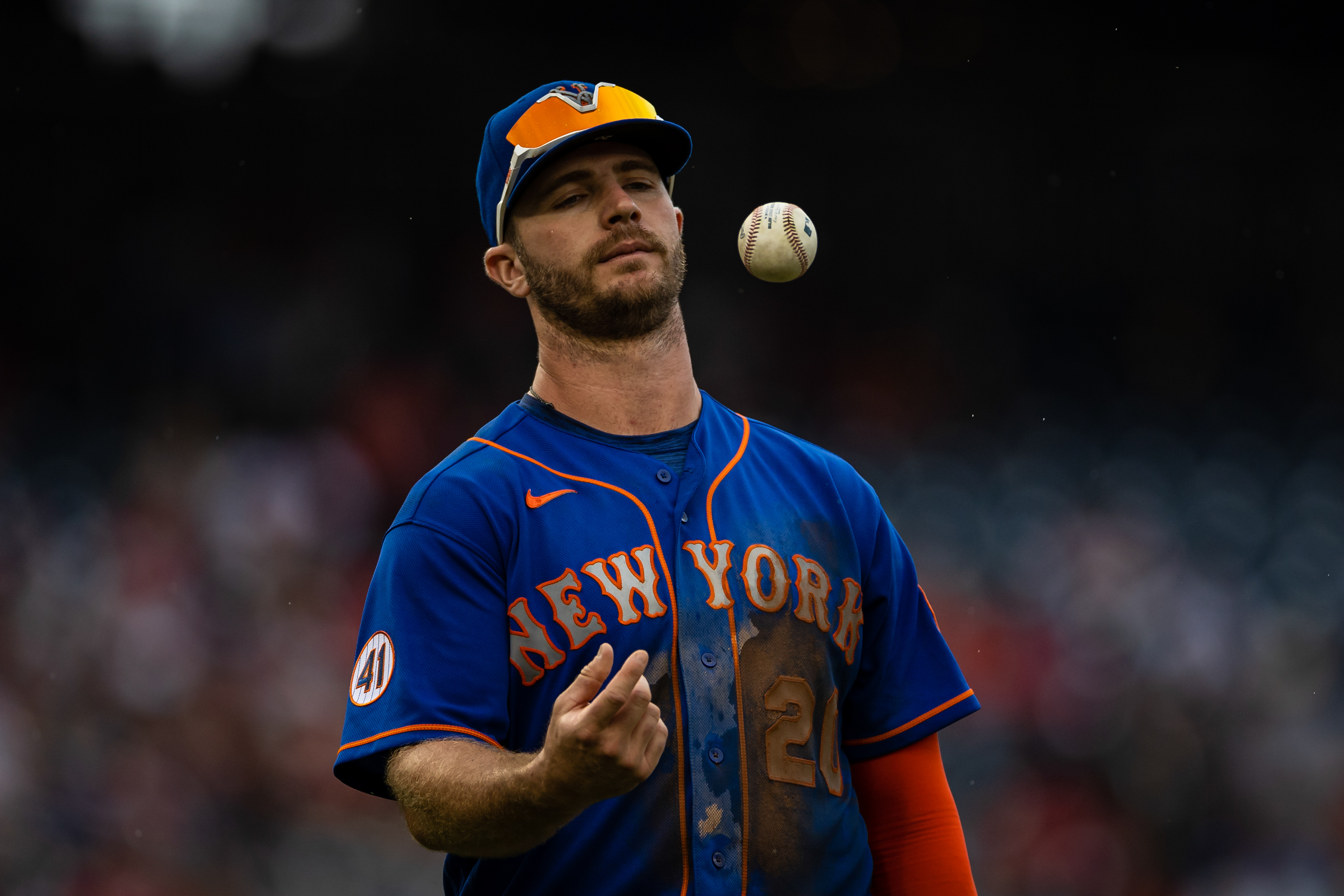 SEE IT: Pete Alonso meets The Pope on his honeymoonAn Italian getaway included a trip to Vatican City11/21/2021, 7:27 PMScott ThompsonEditorial ProducerNew York Mets first baseman Pete Alonso (20) tosses the ball after a play against the Washington Nationals at Nationals Park. / Scott Taetsch-USA TODAY Sports