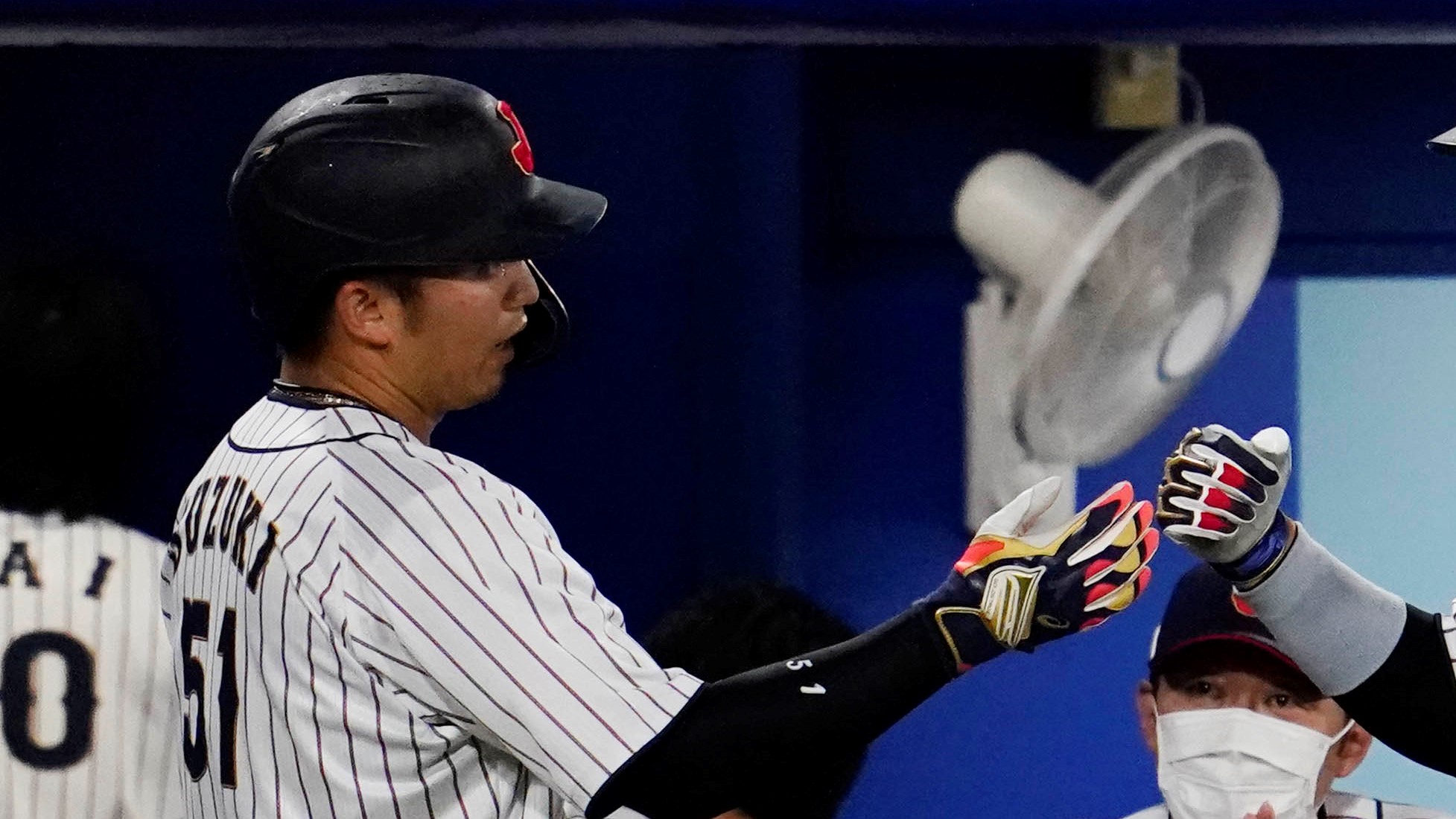 Aug 2, 2021; Yokohama, Japan; Team Japan outfielder Seiya Suzuki (51) celebrates after scoring a run against USA in a second round baseball game during the Tokyo 2020 Olympic Summer Games at Yokohama Baseball Stadium. Mandatory Credit: Mandi Wright-USA TODAY Sports / Mandi Wright-USA TODAY Sports