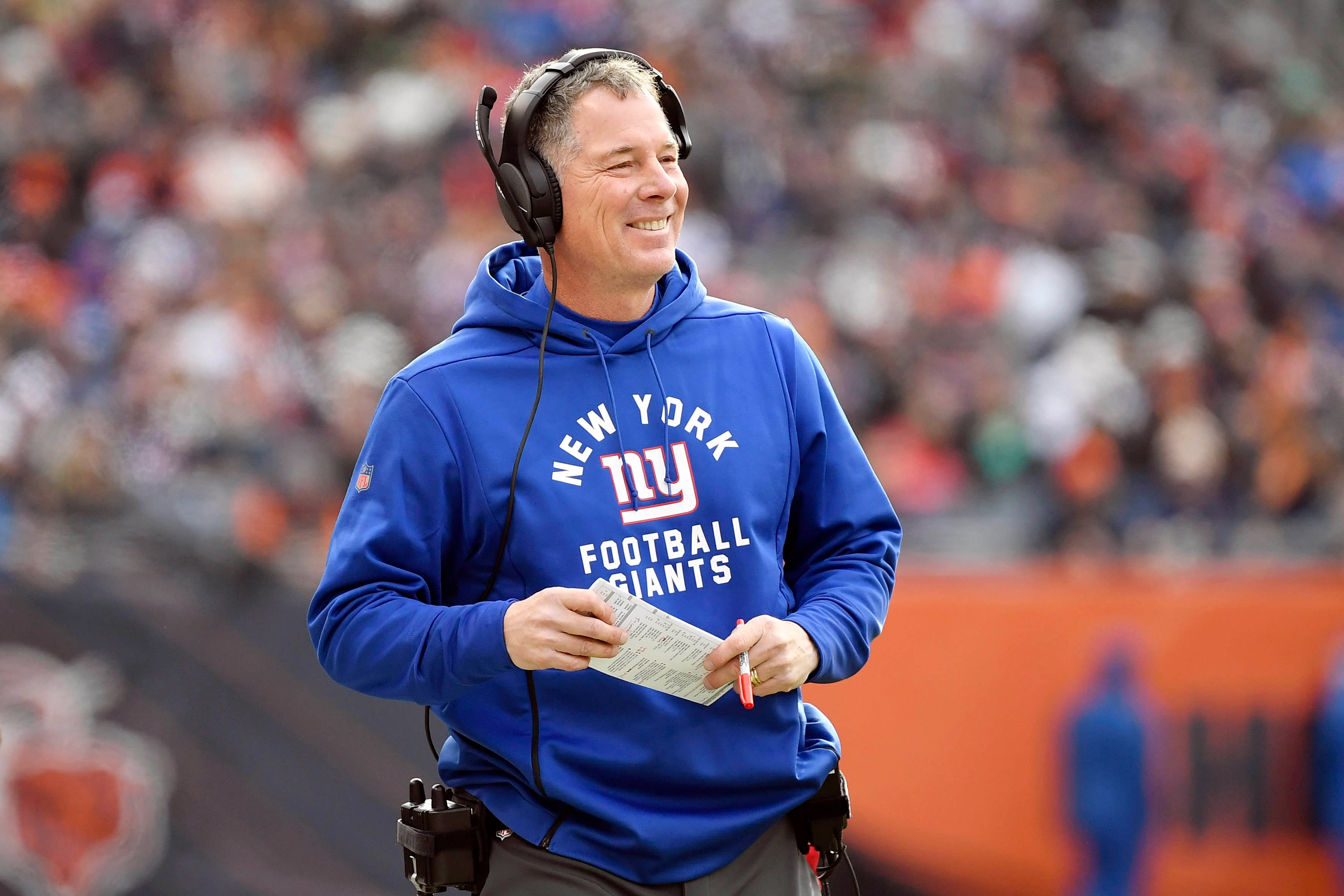 Nov 24, 2019; Chicago, IL, USA; New York Giants head coach Pat Shurmur smiles after the touchdown in the first half against the Chicago Bears at Soldier Field. Mandatory Credit: Quinn Harris-USA TODAY Sports / Quinn Harris