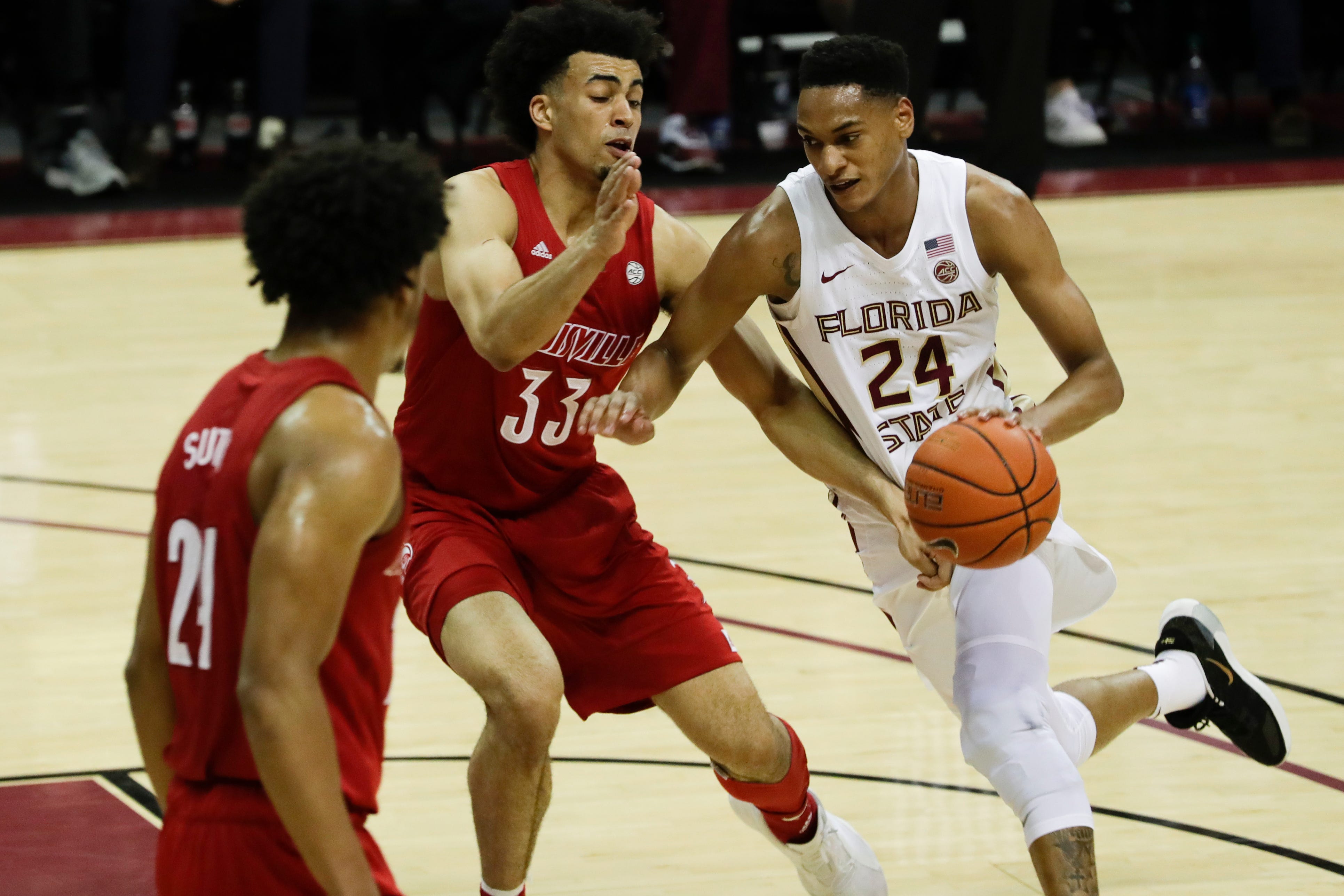 Florida State Seminoles guard Devin Vassell (24) drives down the lane during a game between FSU and Louisville at Donald L. Tucker Civic Center Monday, Feb. 24, 2020. / Tori Lynn Schneider/Tallahassee Democrat, The Daily Advertiser via Imagn Content Services, LLC