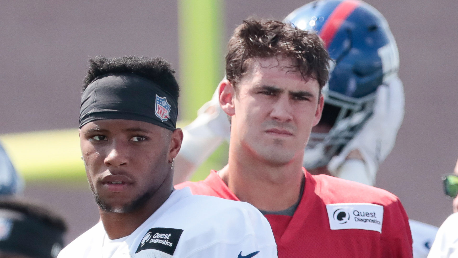 Source: Video of Giants' Daniel Jones and Saquon Barkley was from a private party Friday nightVideo appeared to show both Giants partying without masks, but bar was closed to public10/25/2020, 7:41 PMAlex SmithEditorial ProducerJul 25, 2019; East Rutherford, NJ, USA; New York Giants running back Saquon Barkley (26) and quarterback Daniel Jones (8) look on during the first day of training camp at Quest Diagnostics Training Center. / Vincent Carchietta-USA TODAY Sports