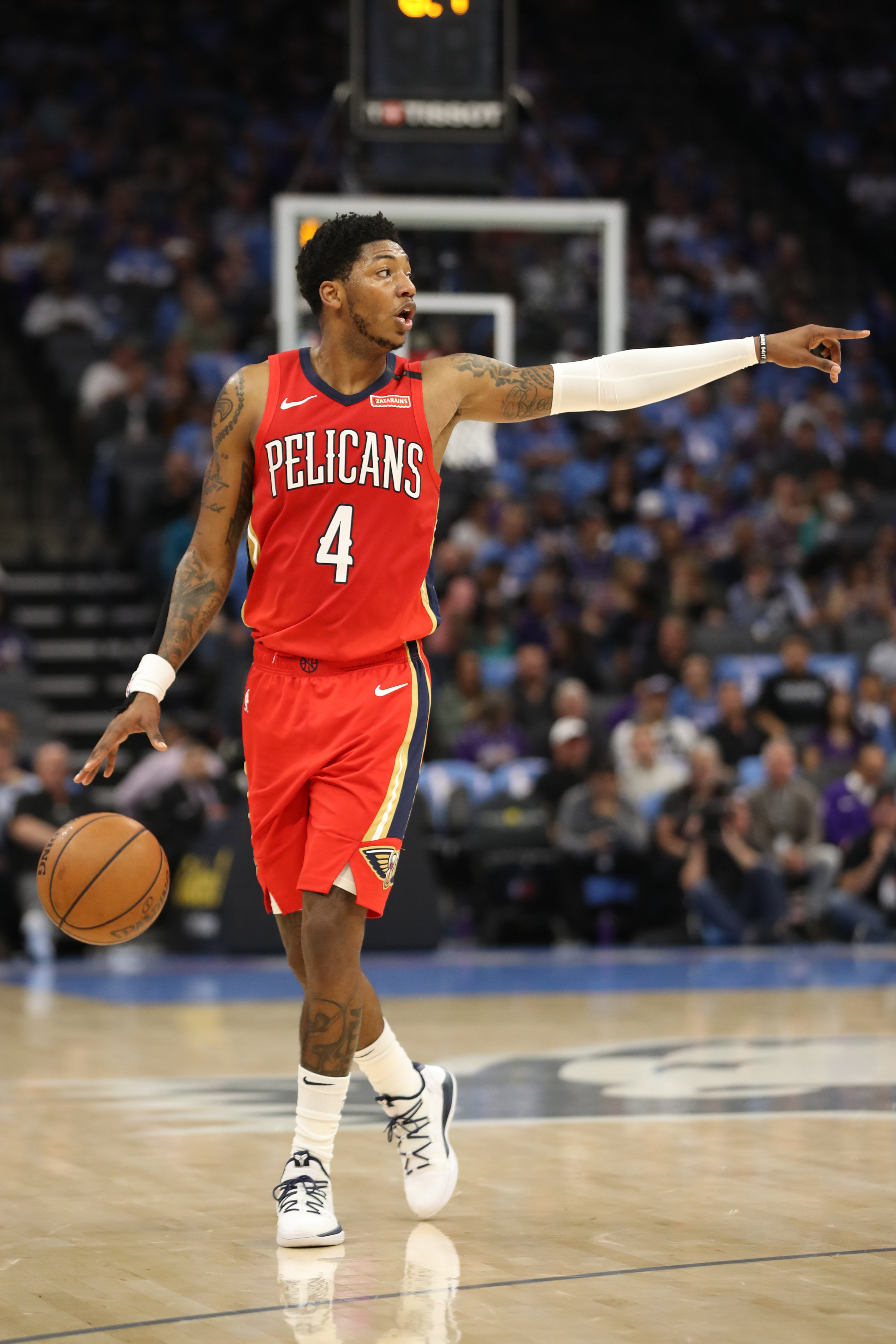 New Orleans Pelicans guard Elfrid Payton gestures while dribbling the ball during the second quarter against the Sacramento Kings at Golden 1 Center. / Darren Yamashita/USA TODAY Sports