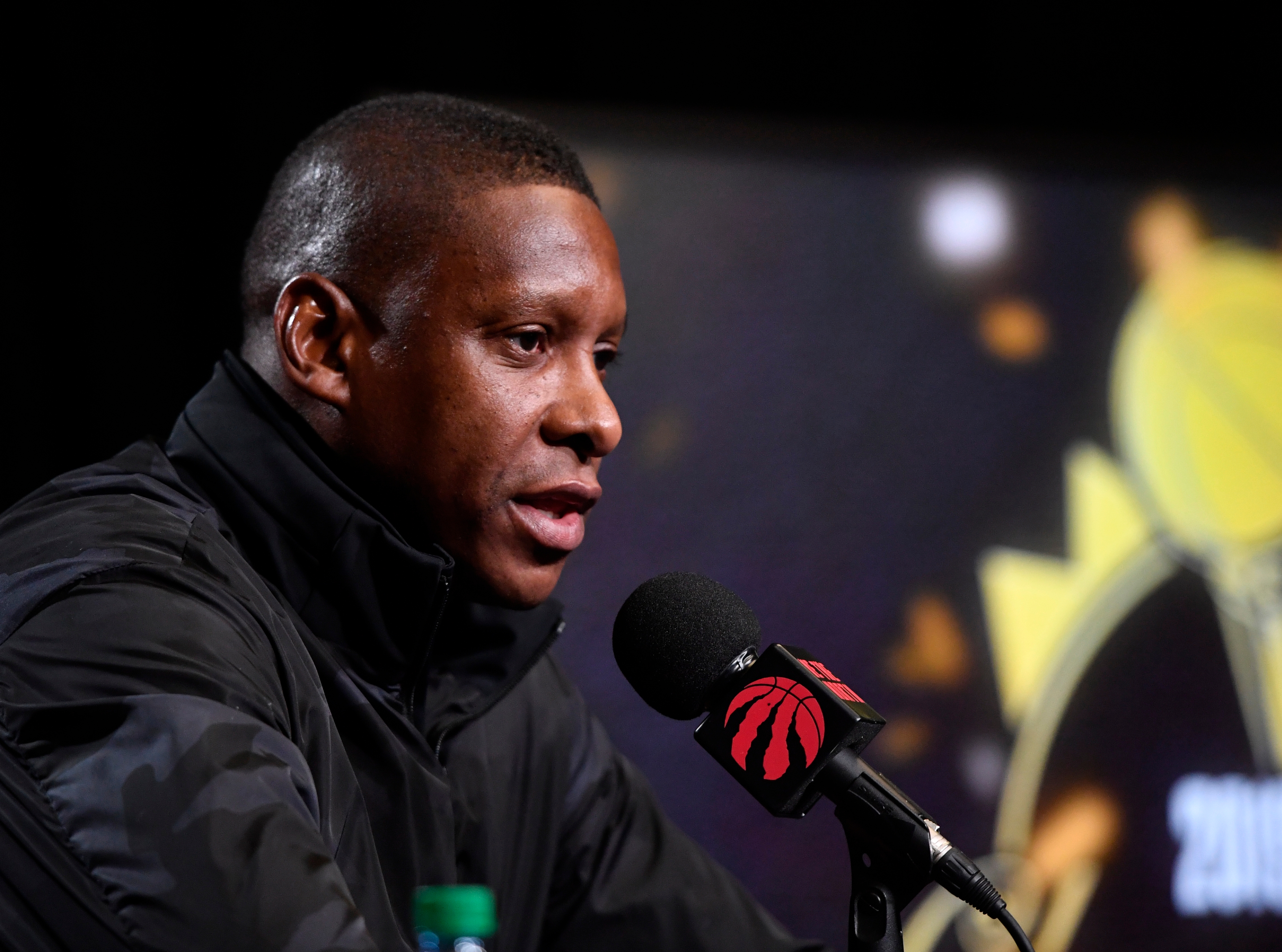 Sep 28, 2019; Toronto, Ontario, Canada; Toronto Raptors president Masai Ujiri talks to the media during Media Day at Scotiabank Arena. Mandatory Credit: Eric Bolte-USA TODAY Sports / Eric Bolte