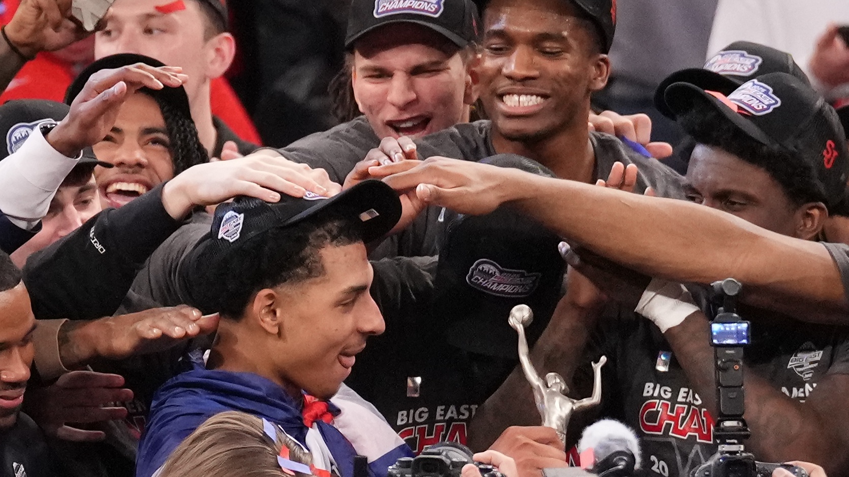 St. John's uses dominant second half to take down Creighton for first Big East title since 2000Red Storm capture their fourth Big East tourney crown3/16/2025, 1:10 AMAssociated PressSt. John's Red Storm guard RJ Luis Jr. (12) gets the MVP award in the ceremony after winning the Big East Championship against the Creighton Bluejays at Madison Square Garden / Robert Deutsch - Imagn Images