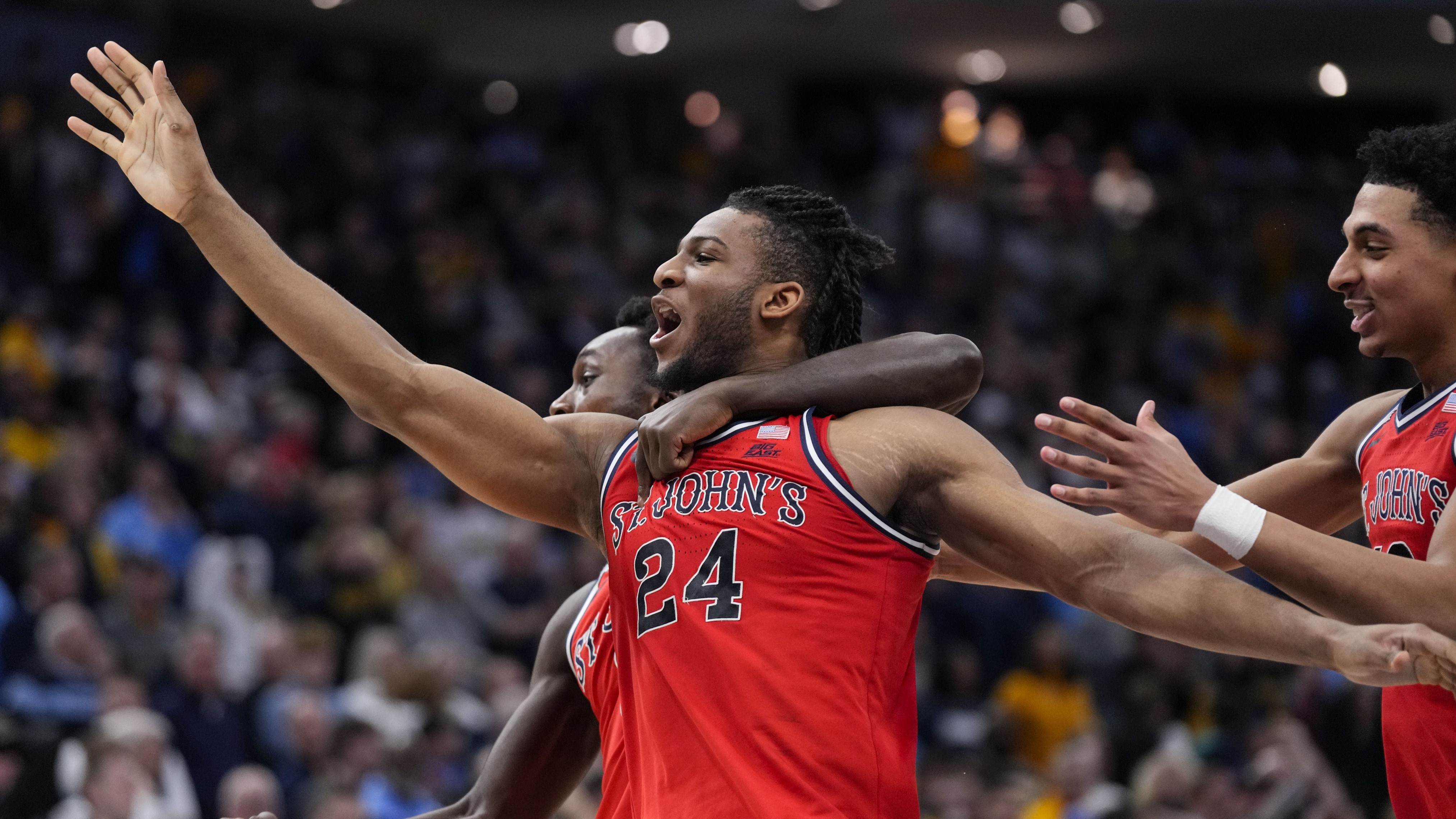 Zuby Ejiofor's buzzer-beater lifts No. 6 St. John's to 86-84 OT win over No. 20 MarquetteKadary Richmond picks up first triple-double for Johnnies since 19993/8/2025, 8:05 PMAssociated PressMar 8, 2025; Milwaukee, Wisconsin, USA; St. John’s Red Storm forward Zuby Ejiofor (24) celebrates after making the game winning shot in overtime against the Marquette Golden Eagles at Fiserv Forum. / Jeff Hanisch-Imagn Images