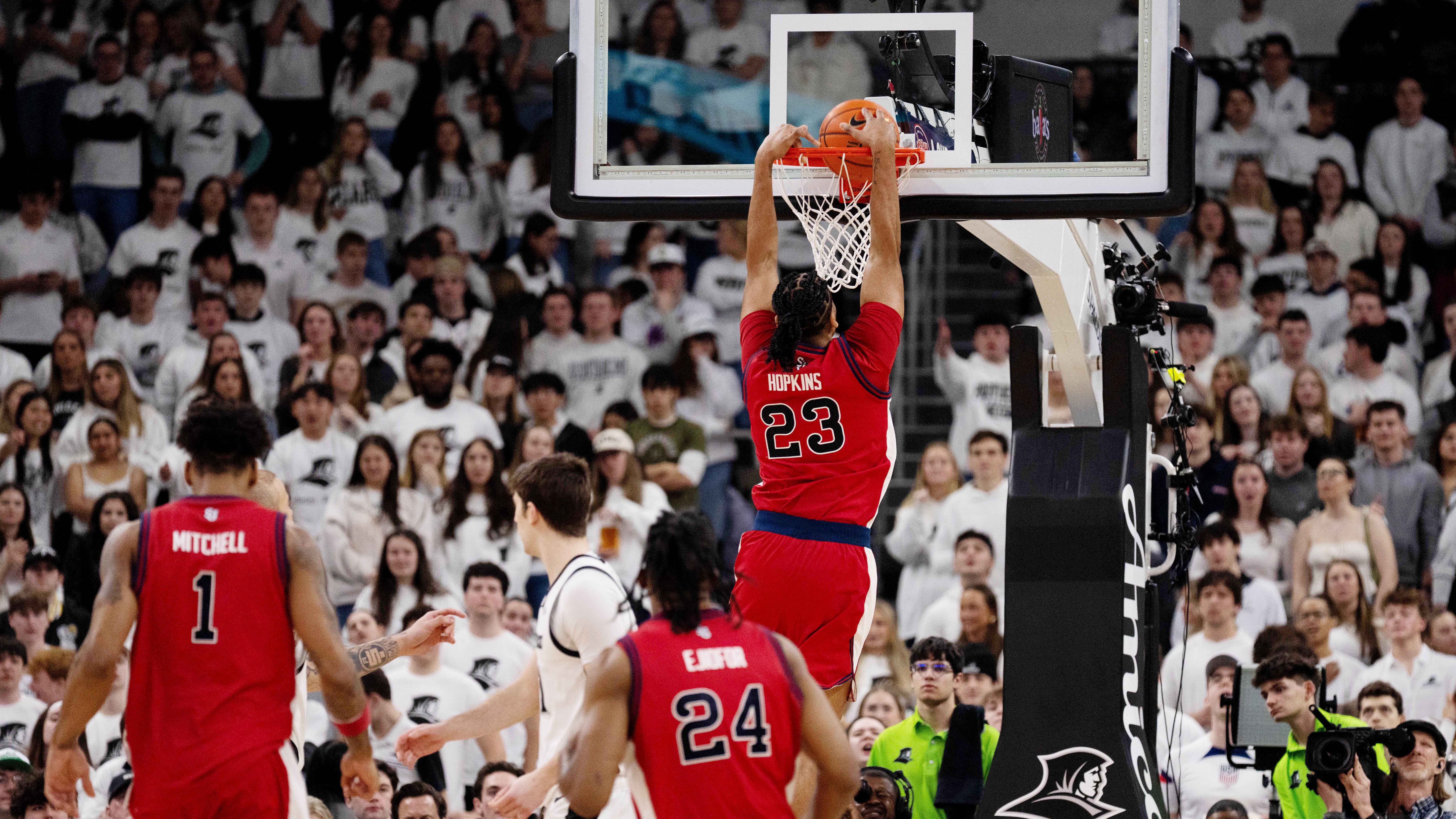 No. 17 St. John's holds off Providence for 79-69 winRed Storm has won 11 straight games2/14/2026, 8:58 PMAssociated PressSt. John’s University Red Storm forward/guard Bryce Hopkins (23) scores during the first half of the game against the Providence College Friars at Amica Mutual Pavilion / Natalie Reid - Imagn Images