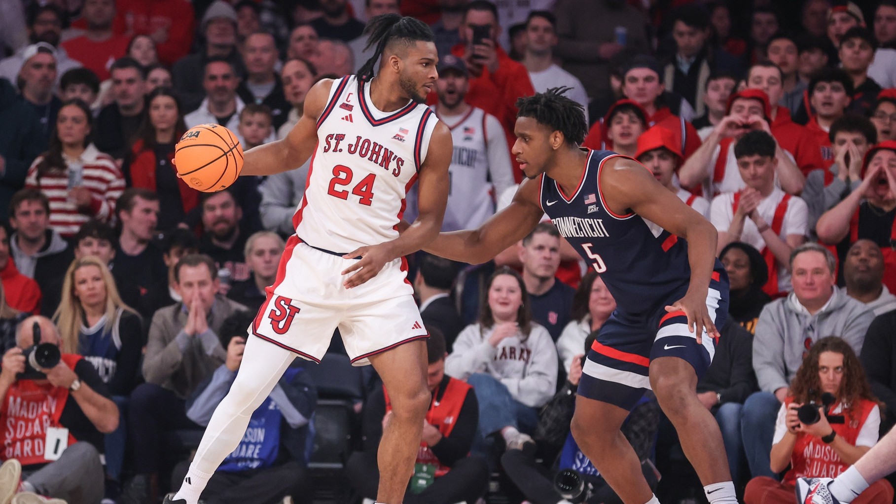 Zuby Ejiofor powers No. 22 St. John's to upset win over No. 3 UConn, 81-72Rick Pitino moves into tie for third all-time wins with first top-five victory since 20162/7/2026, 3:40 AMAssociated PressFeb 6, 2026; New York, New York, USA; St. John's Red Storm forward Zuby Ejiofor (24) looks to drive past UConn Huskies forward Tarris Reed Jr. (5) in the first half at Madison Square Garden. / Wendell Cruz-Imagn Images