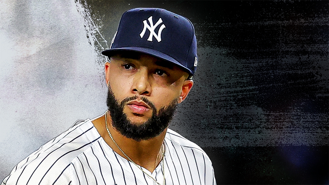 Apr 25, 2025; Bronx, New York, USA; New York Yankees relief pitcher Devin Williams (38) reacts as he walks off the field after being taken out of the game against the Toronto Blue Jays during the ninth inning at Yankee Stadium. / Brad Penner-Imagn Images