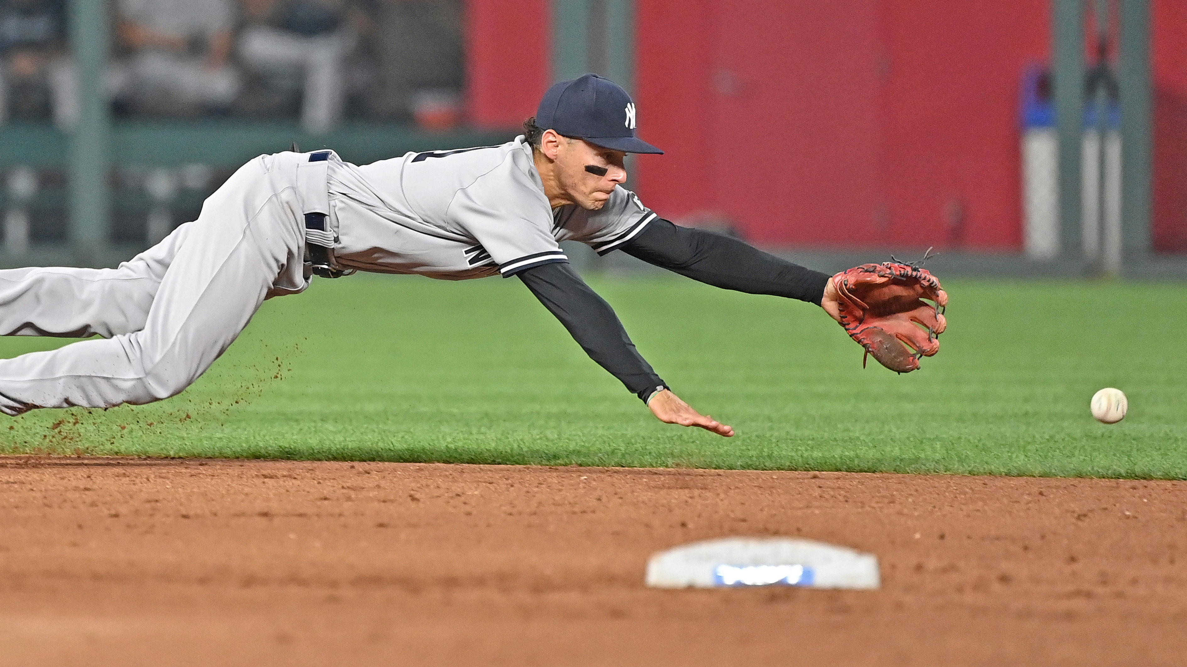 Who is surprise Yankees shortstop Andrew Velazquez and what skills does he bring to the pennant race?Fordham Prep product made his impact known on Tuesday night8/11/2021, 2:01 AMAndy MartinoMLB InsiderAug 9, 2021; Kansas City, Missouri, USA; New York Yankees shortstop Andrew Velazquez (71) dives for a ground ball against the Kansas City Royals during the fourth inning at Kauffman Stadium. / Peter Aiken-USA TODAY Sports