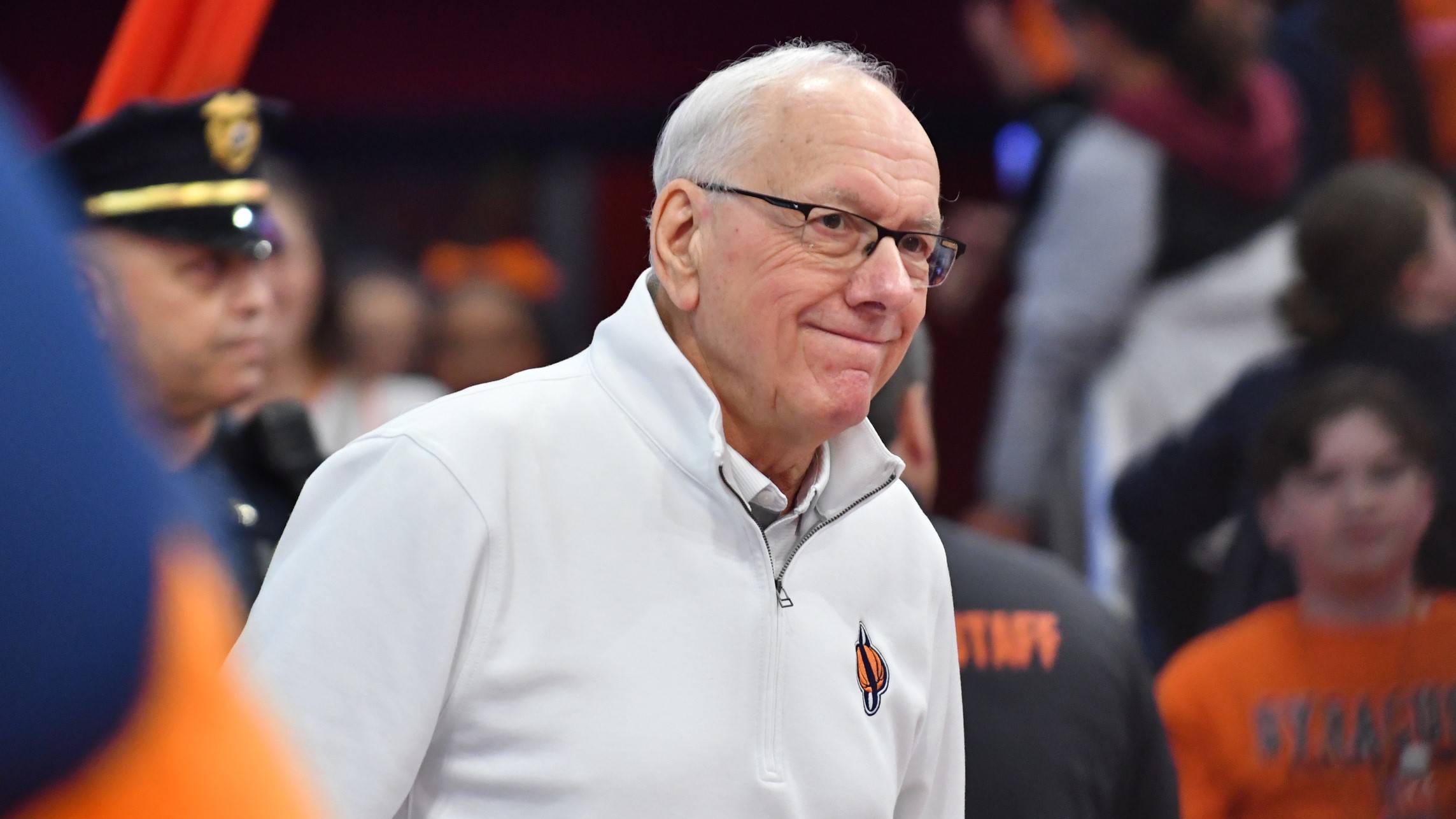 Mar 4, 2023; Syracuse, New York, USA; Syracuse Orange head coach Jim Boeheim enters the court before a game against the Wake Forest Demon Deacons at JMA Wireless Dome. / Mark Konezny-USA TODAY Sports