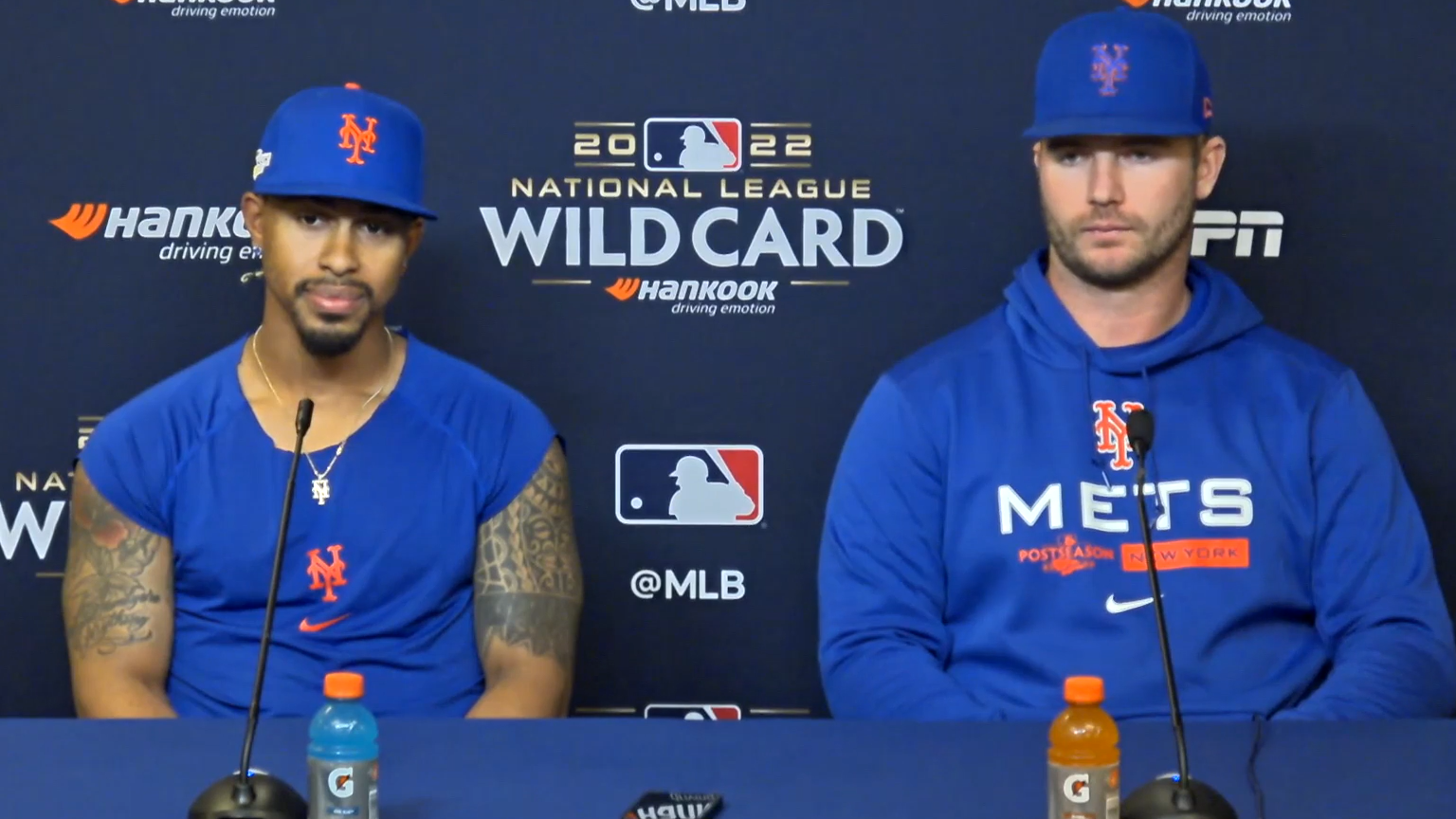 Takeaways from Mets' Francisco Lindor and Pete Alonso ahead of Wild Card SeriesMets take on Padres in best-of-three series beginning Friday night10/6/2022, 10:10 PMColin MartinFreelance Editorial ProducerNew York Mets designated hitter Pete Alonso (right) celebrates with shortstop Francisco Lindor (12) after hitting a home run against the Oakland Athletics during the fourth inning at RingCentral Coliseum. / Darren Yamashita-USA TODAY Sports