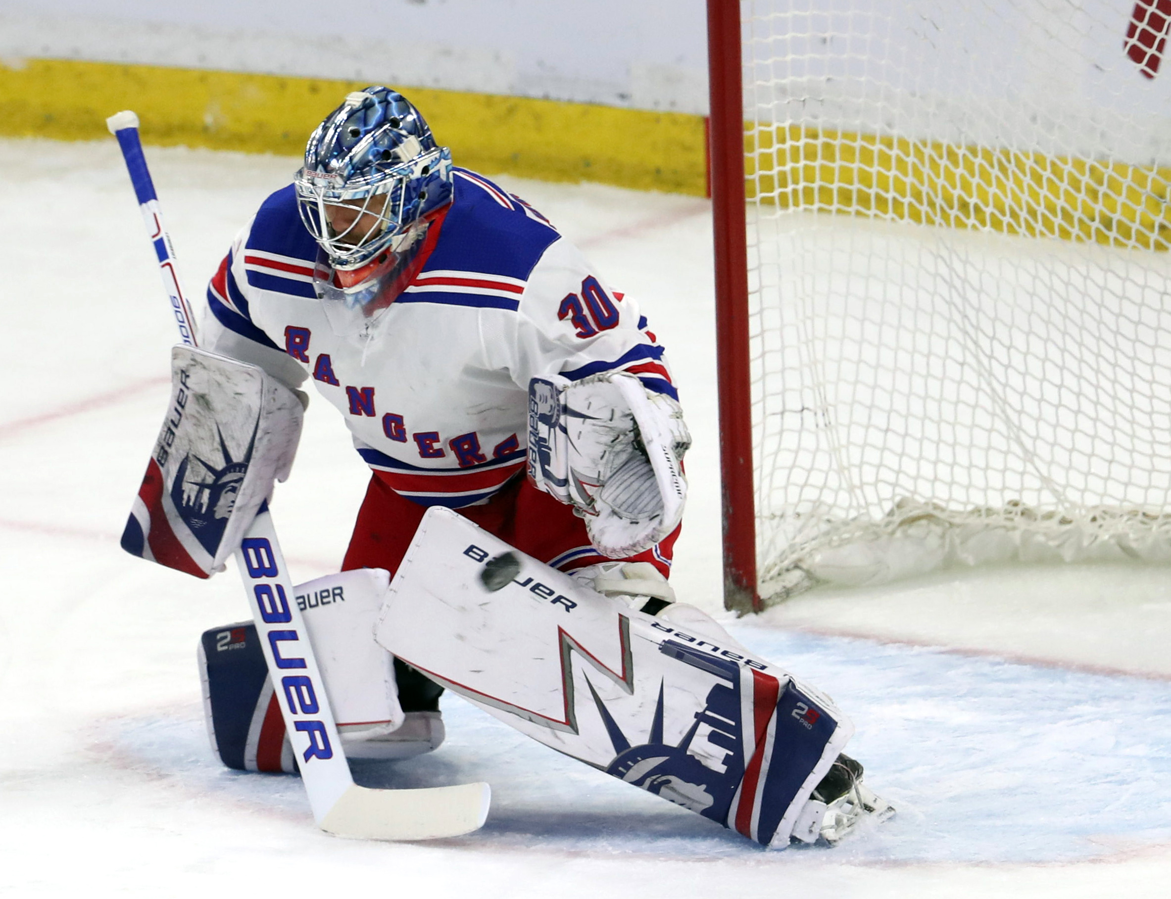 Feb 17, 2018; Ottawa, Ontario, CAN; New York Rangers goaltender Henrik Lundqvist (30) makes a save against Ottawa Senators during the first period at Canadian Tire Centre. Mandatory Credit: Jean-Yves Ahern-USA TODAY Sports / Jean-Yves Ahern