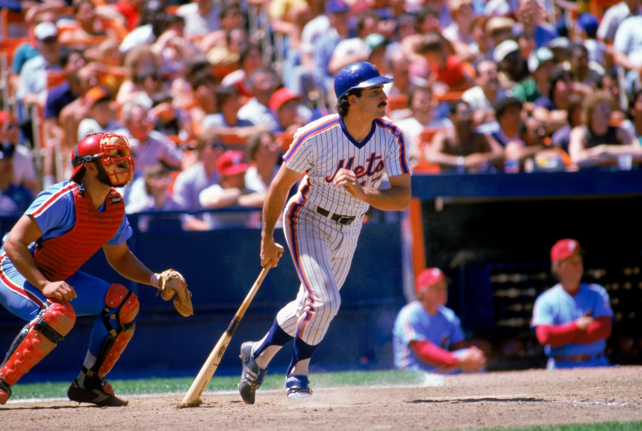 FLUSHING, NY: Keith Hernandez #17 of the New York Mets watches the flight of the ball as he heads to first base during a game at Shea Stadium in Flushing, New York. Hernandez played for the Mets from 1983-1989. (Photo by MLB Photos via Getty Images) / MLB Photos/Getty Images