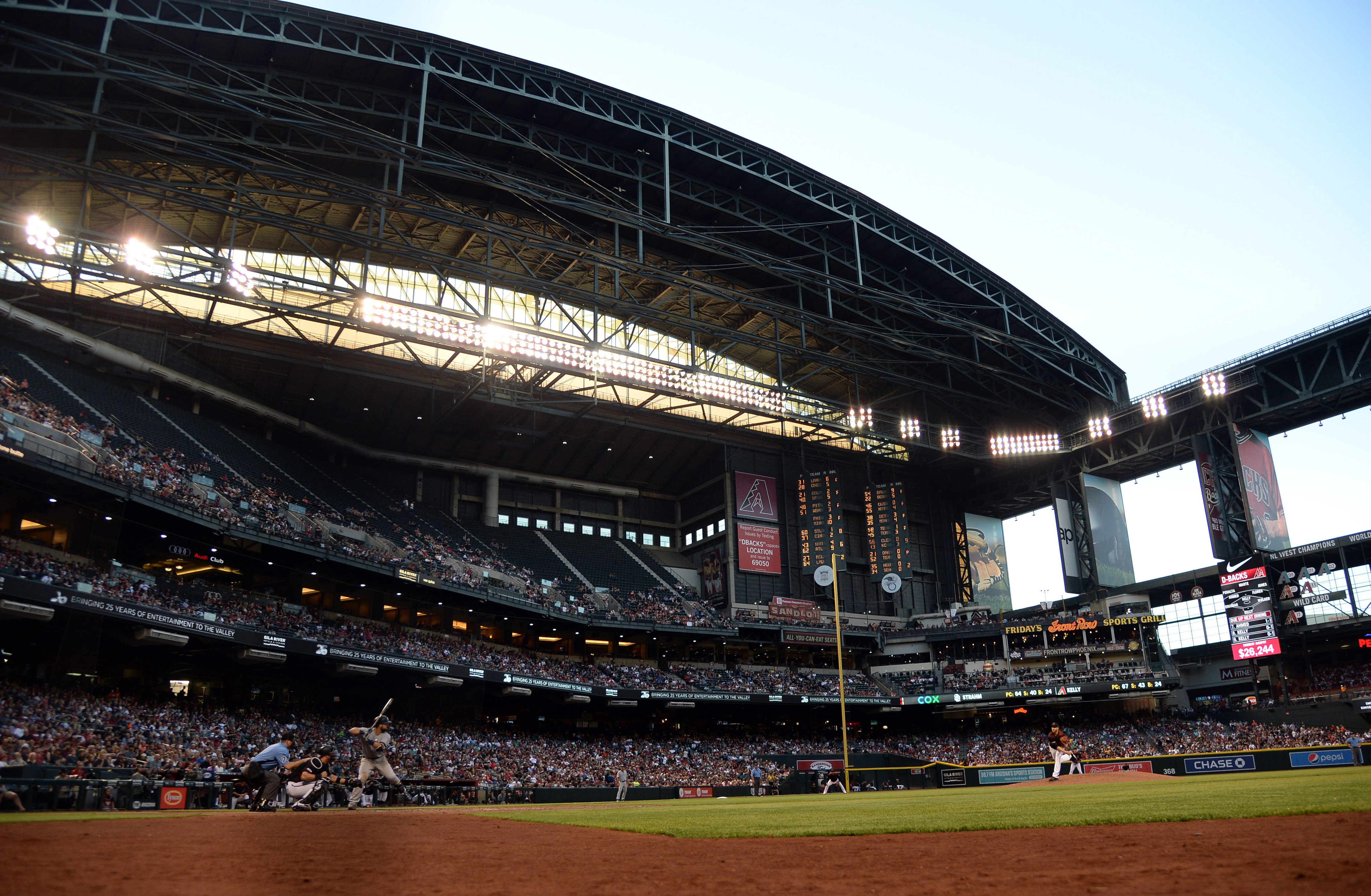 Apr 13, 2019; Phoenix, AZ, USA; A general view of game action between the Arizona Diamondbacks and the San Diego Padres during the fourth inning at Chase Field. Mandatory Credit: Joe Camporeale-USA TODAY Sports / Joe Camporeale