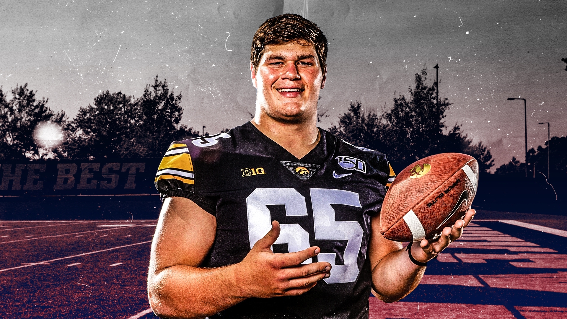Iowa freshman offensive lineman Tyler Linderbaum (65) protects members of the offense against Middle Tennessee at Kinnick Stadium on Saturday, Sept. 28, 2019, in Iowa City. / Bryon Houlgrave/The Register-Imagn Content Services, LLC