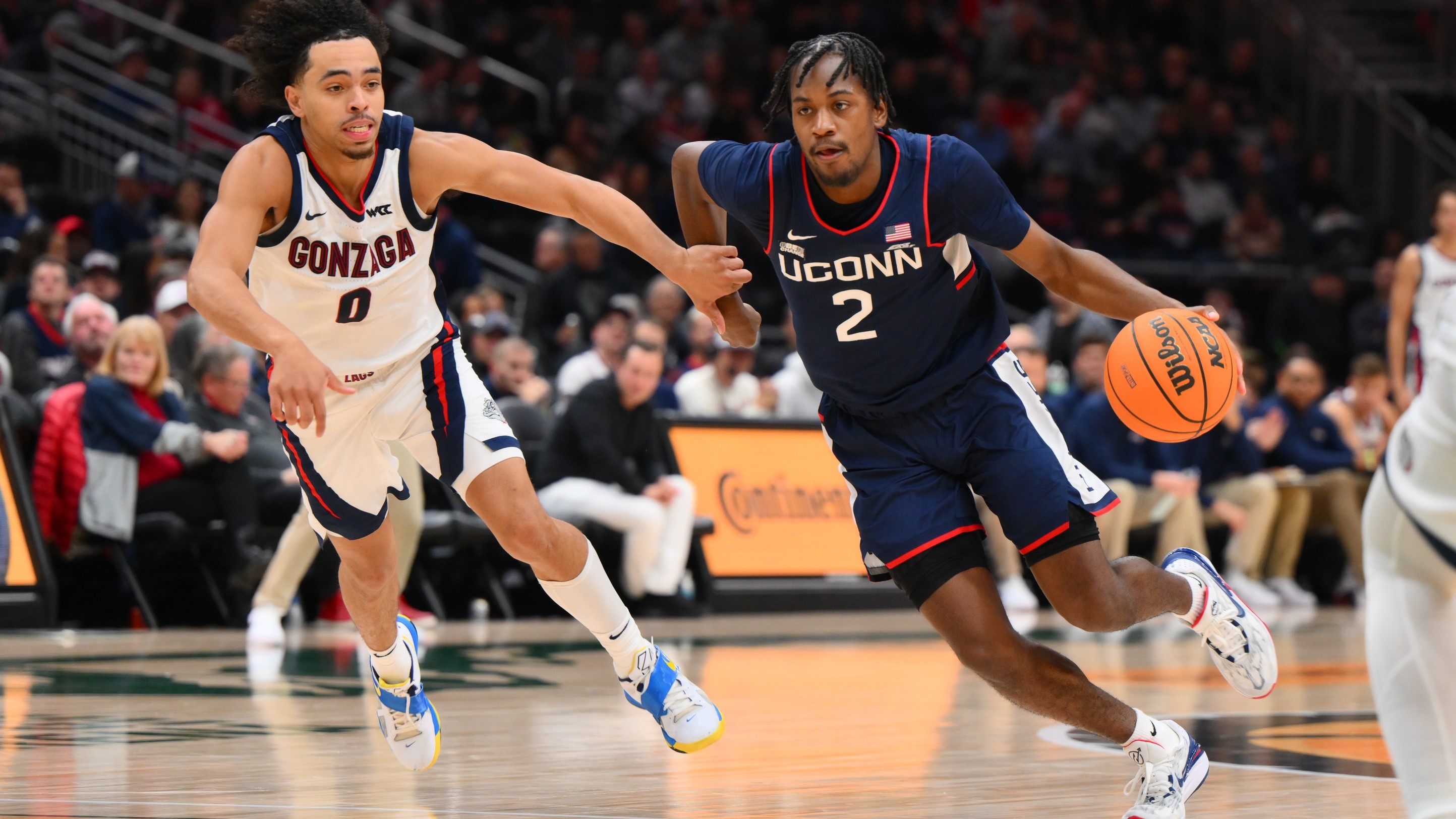 No. 5 UConn finishes non-conference schedule with 76-63 win over No. 10 GonzagaDonovan Clingan scored 21 points in the win12/16/2023, 5:45 AMAssociated PressDec 15, 2023; Seattle, Washington, USA; Connecticut Huskies guard Tristen Newton (2) dribbles the ball while guarded by Gonzaga Bulldogs guard Ryan Nembhard (0) during the second half at Climate Pledge Arena. / Steven Bisig-USA TODAY Sports