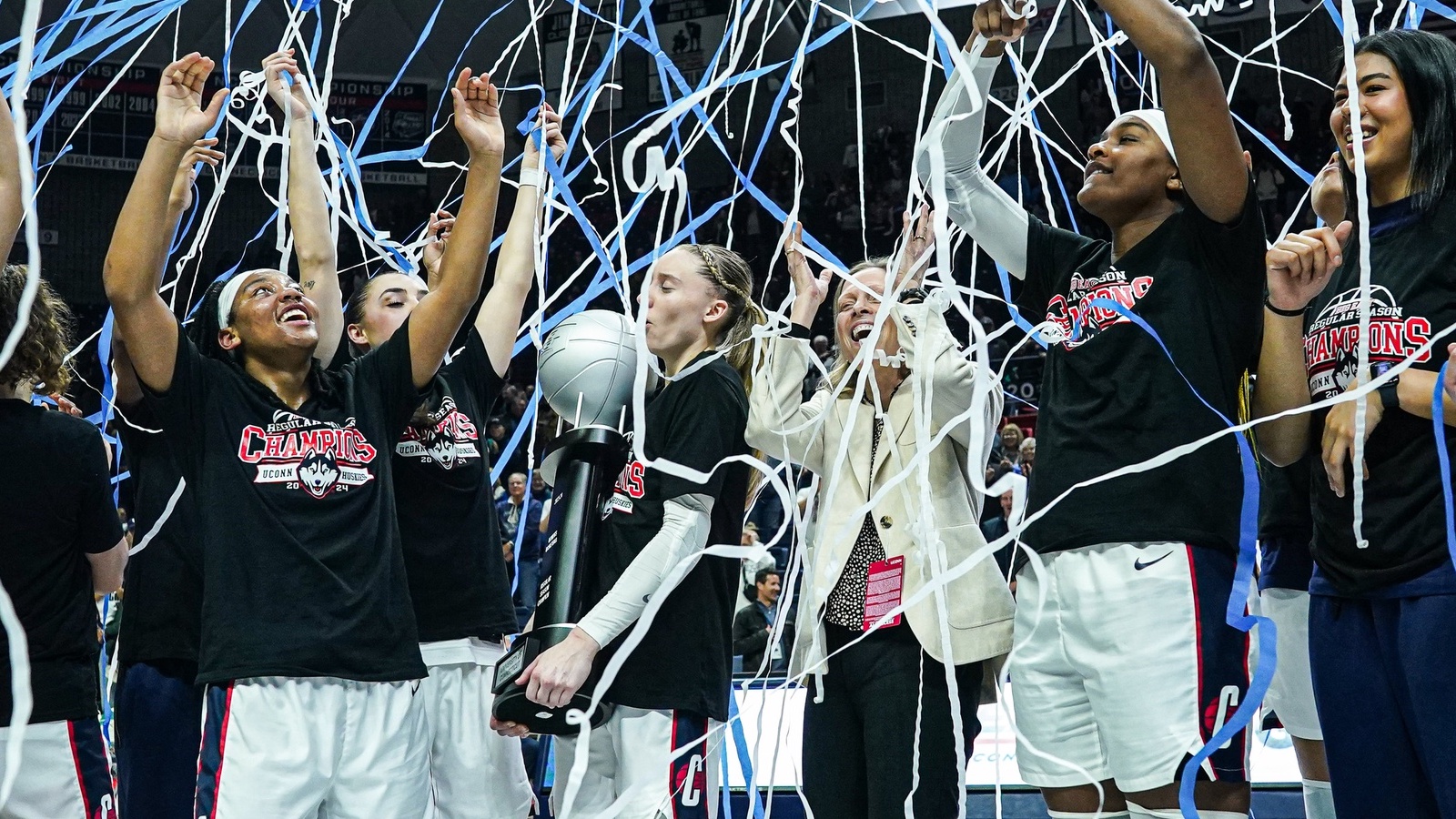 No. 10 UConn finishes off perfect conference record with 65-42 win over ProvidenceHuskies play suffocating defense, hold Friars to 25 points through three quarters3/3/2024, 3:00 AMAssociated PressThe UConn Huskies are named Big East Regular Season Champion after defeating the Villanova Wildcats at Harry A. Gampel Pavilion. / David Butler II-USA TODAY Sports