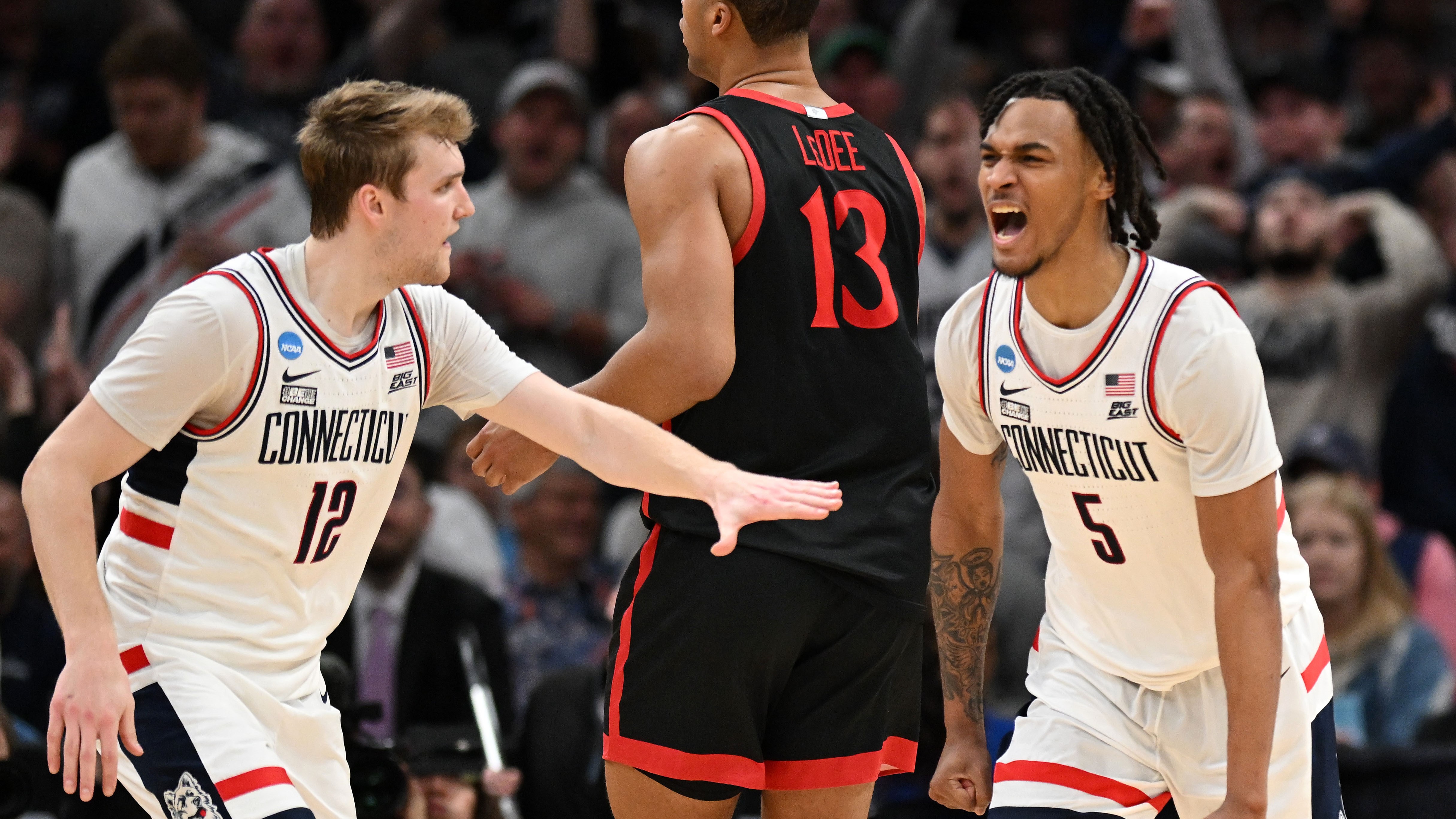 Top-seeded UConn blows through another opponent, beating San Diego State 82-52 to reach Elite EightHuskies dominate Aztecs in rematch of last year's national championship game3/29/2024, 2:14 AMAssociated Press