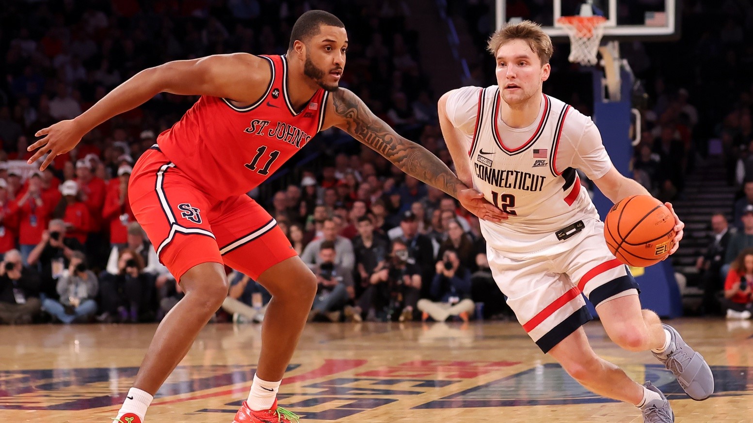 No. 2 UConn outlasts St. John's, 95-90, in Big East Tournament SemifinalsTristen Newton had a team-high 25 points3/16/2024, 12:23 AMAssociated PressMar 15, 2024; New York City, NY, USA; Connecticut Huskies guard Cam Spencer (12) drives to the basket against St. John's Red Storm center Joel Soriano (11) during the second half at Madison Square Garden. / Brad Penner-USA TODAY Sports