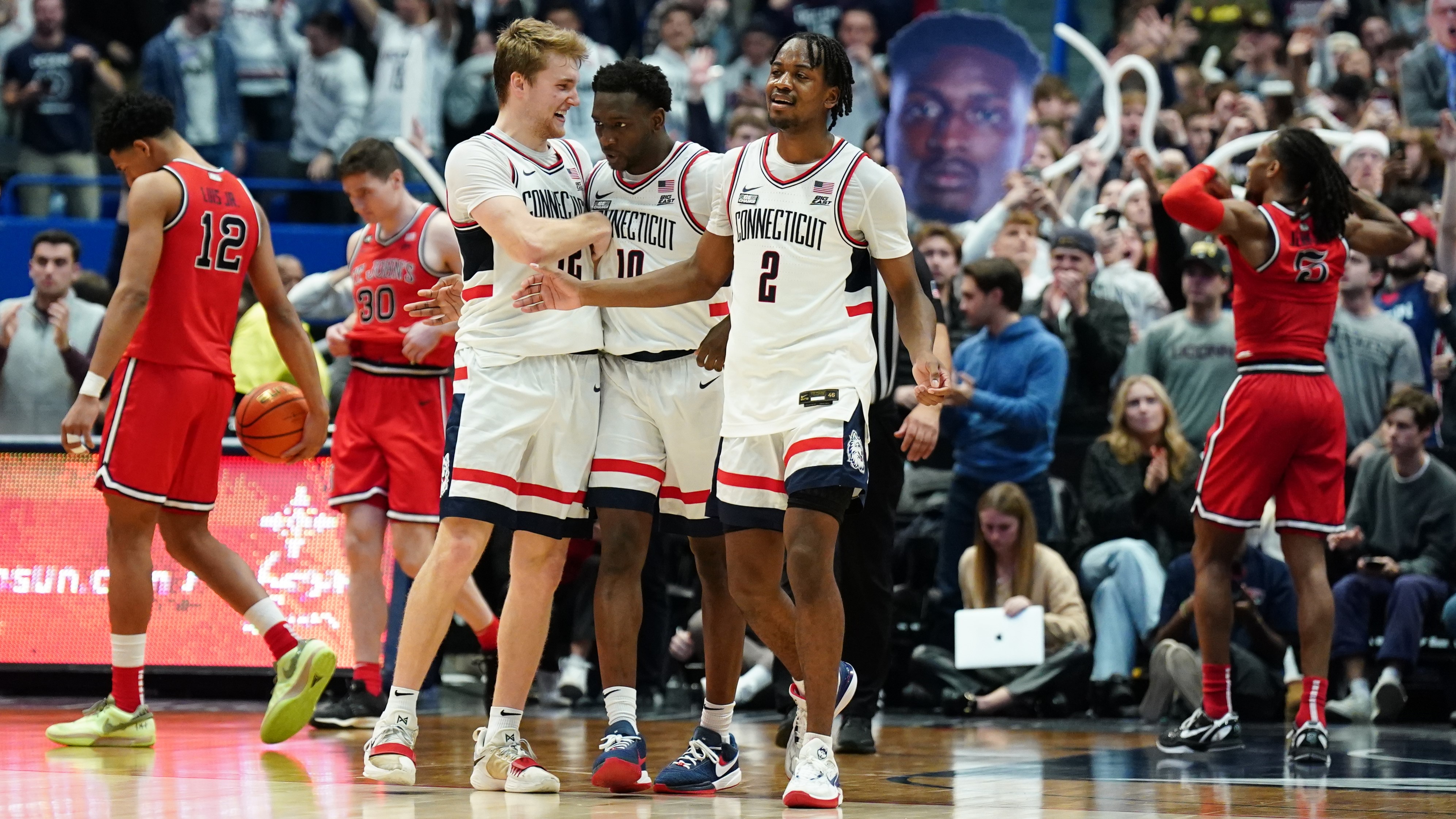 Tristen Newton leads UConn to 69-65 win over St. John's in Big East home openerThe senior scored 12 of his 15 points in the fourth quarter12/24/2023, 4:16 AMAssociated PressDec 23, 2023; Hartford, Connecticut, USA; Connecticut Huskies guard Cam Spencer (12), guard Tristen Newton (2) and guard Hassan Diarra (10) react after defeating the St. John's Red Storm at XL Center. Mandatory Credit: David Butler II-USA TODAY Sports / © David Butler II-USA TODAY Sports