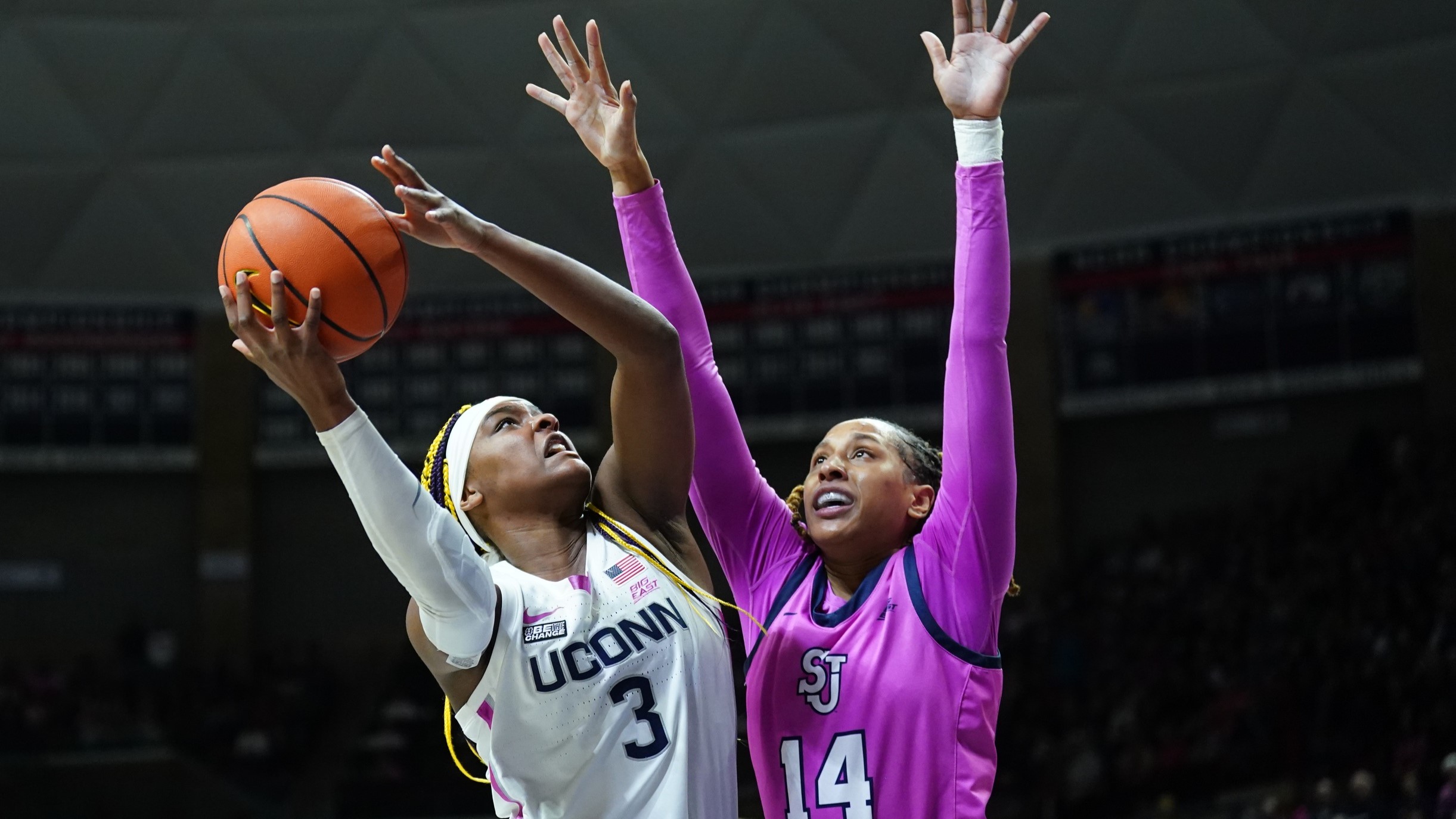 Aaliyah Edwards scores career-high 33 points to lead No. 11 UConn to 78-63 win over St. John'sPaige Bueckers added 26 points of her own2/4/2024, 11:00 PMAssociated PressFeb 4, 2024; Storrs, Connecticut, USA; UConn Huskies forward Aaliyah Edwards (3) shoots against St. John's Red Storm forward Jillian Archer (14) in the first half at Harry A. Gampel Pavilion. / David Butler II-USA TODAY Sports