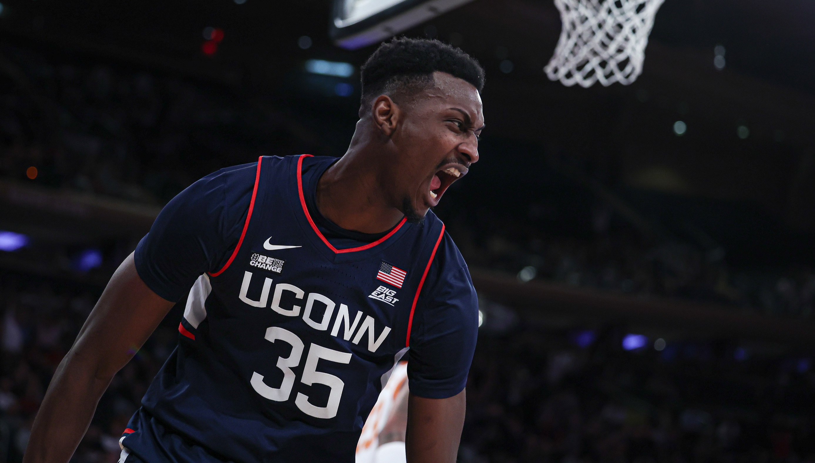 No. 5 UConn holds off No. 15 Texas to win Empire Classic championship, 81-71Three Huskies finished with double-digit points inside MSG11/21/2023, 2:59 AMAssociated PressConnecticut Huskies forward Samson Johnson (35) reacts after a dunk during the first half of the Empire Classic championship game against the Texas Longhorns at Madison Square Garden. / Vincent Carchietta-USA TODAY Sports