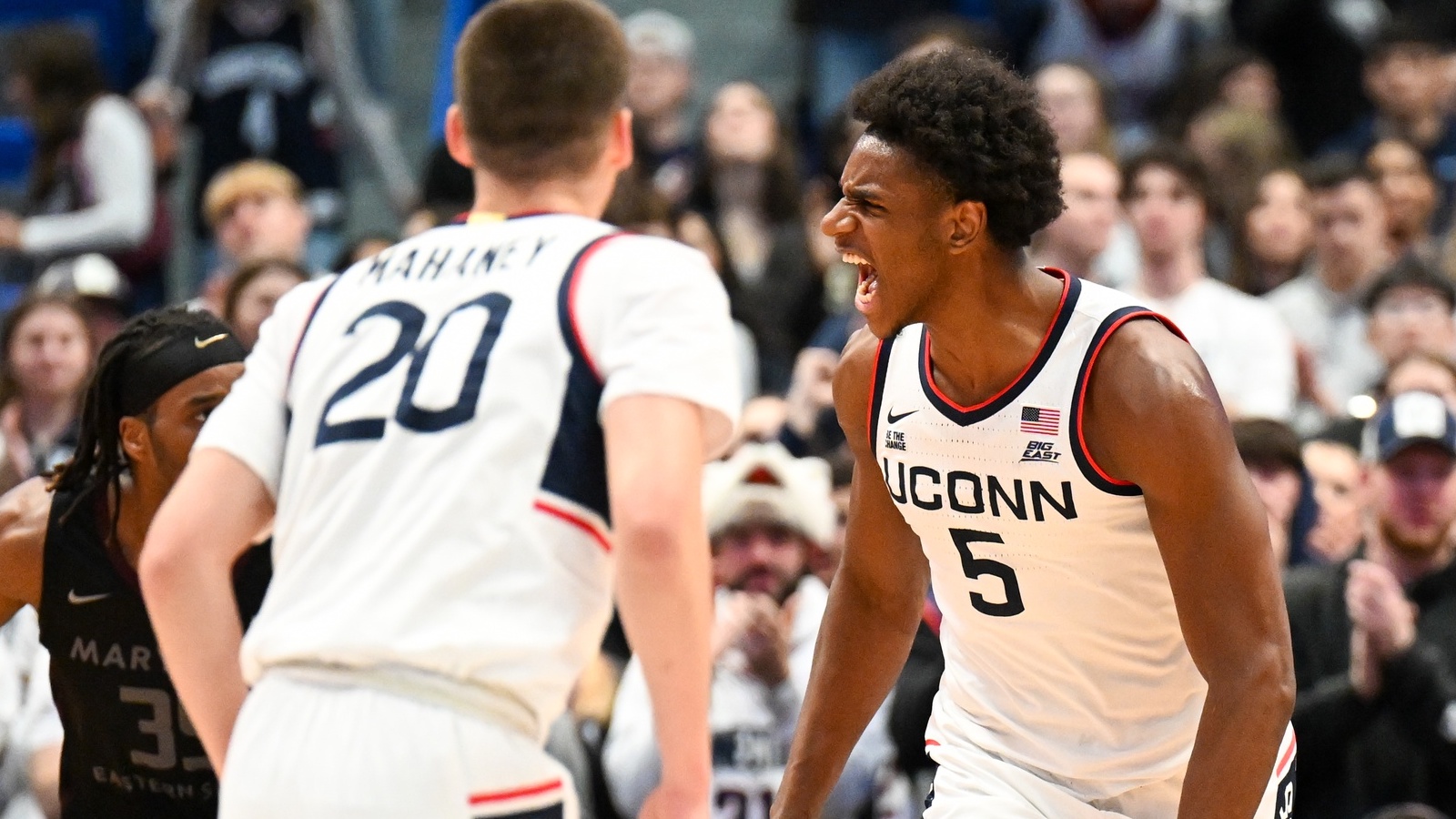 UConn rebounds from disastrous week with blowout win against Maryland Eastern ShoreHuskies improve to 5-3 this season12/1/2024, 2:27 AMAssociated PressConnecticut Huskies center Tarris Reed Jr. (5) celebrates after scoring during the first half against the Maryland Eastern Shore Hawks at XL Center. / Mark Smith-Imagn Images
