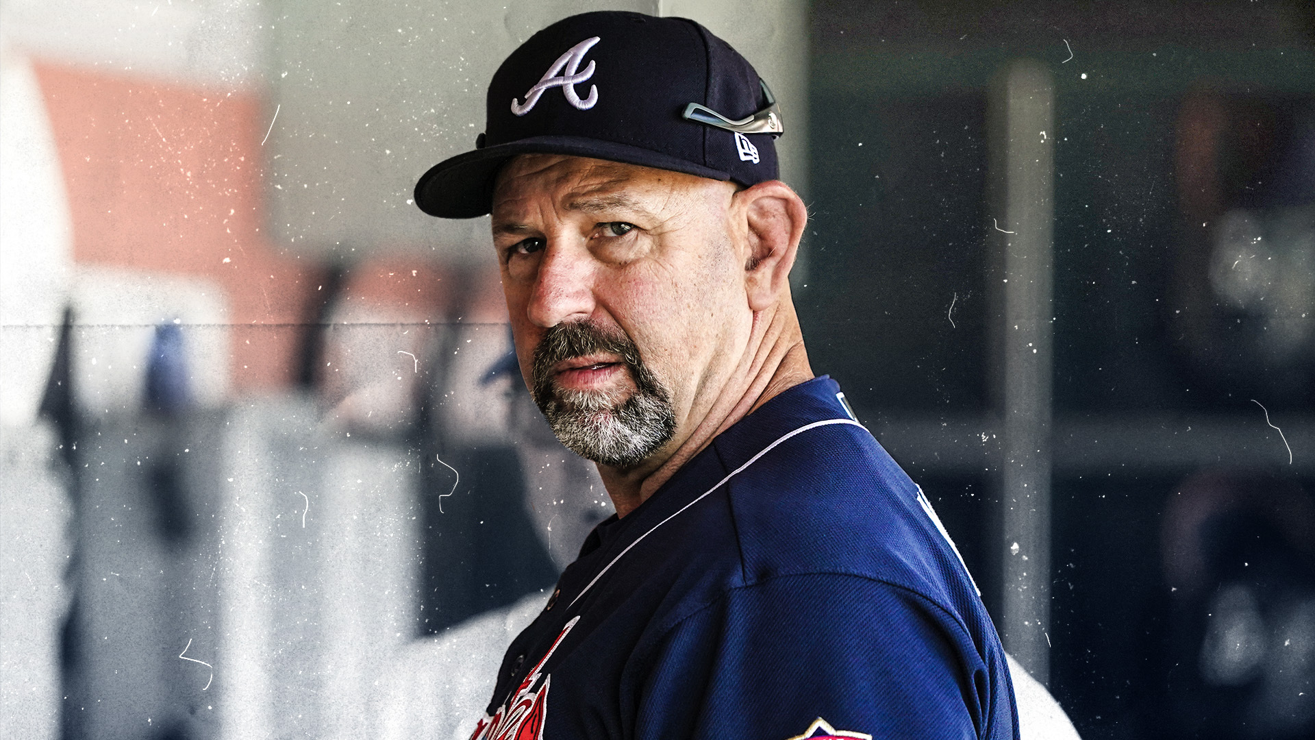 Jun 26, 2021; Cincinnati, Ohio, USA; Atlanta Braves manager Brian Snitker (left) and bench coach Walt Weiss (right) watch from the dugout during a game with the Cincinnati Reds at Great American Ball Park. / David Kohl-USA TODAY Sports
