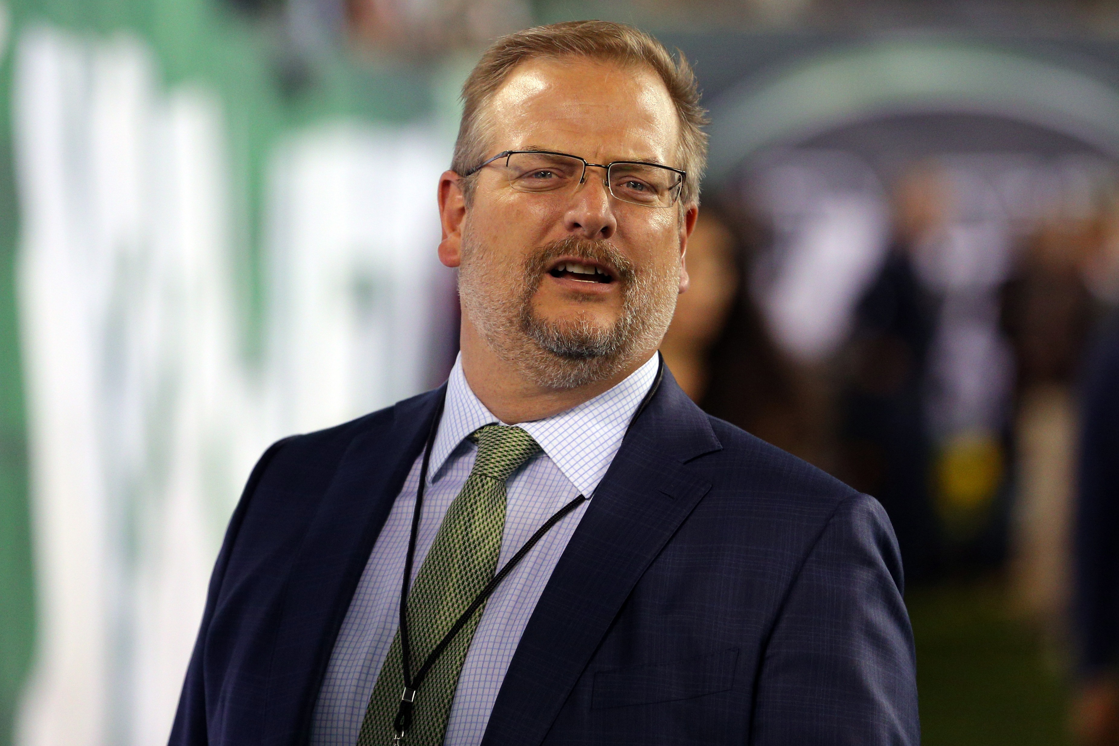 Nov 2, 2017; East Rutherford, NJ, USA; New York Jets general manager Mike Maccagnan on the sidelines before a game against the Buffalo Bills at MetLife Stadium. Mandatory Credit: Brad Penner-USA TODAY Sports / Brad Penner