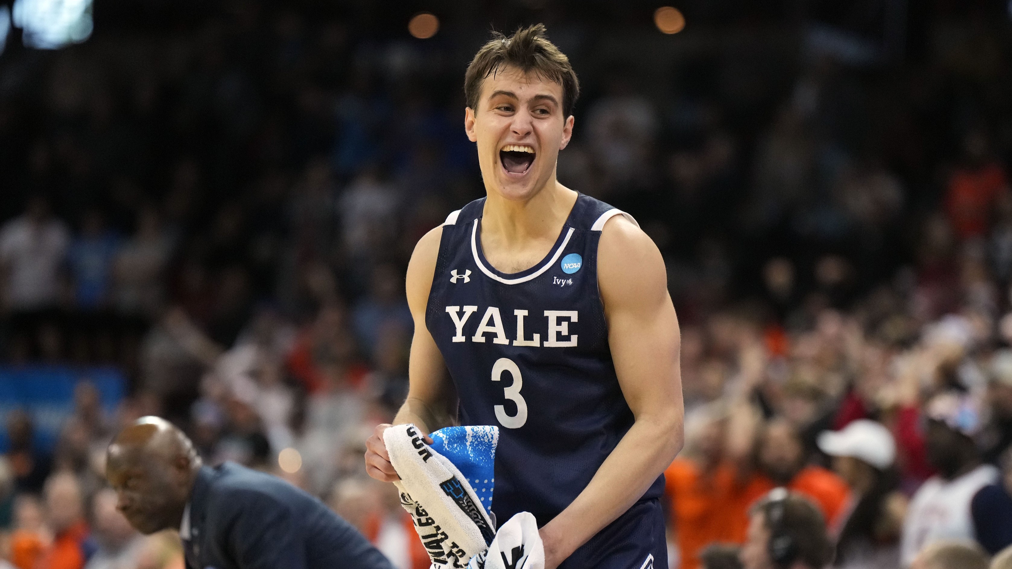No. 13 Yale upsets No. 4 Auburn, 78-76, in the first round of 2024 NCAA TournamentYale will take on San Diego State in the second round3/23/2024, 12:00 AMAssociated PressMar 22, 2024; Spokane, WA, USA; Yale Bulldogs guard August Mahoney (3) reacts during the second half of a game against the Auburn Tigers in the first round of the 2024 NCAA Tournament at Spokane Veterans Memorial Arena. / Kirby Lee-USA TODAY Sports