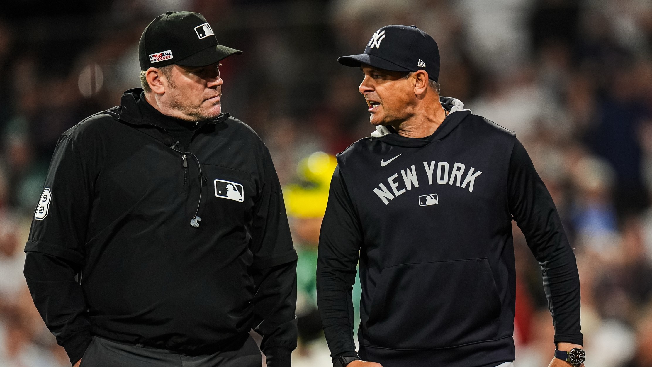 Yankees' Aaron Boone talks heated 10th-inning ejection: 'I want the courage to overturn the call'DJ LeMahieu was ejected for first time in his career6/14/2025, 4:10 AMPhillip MartinezEditorial ProducerJun 13, 2025; Boston, Massachusetts, USA; New York Yankees manager Aaron Boone (17) has words with the officials as they take on the Boston Red Sox in the tenth inning at Fenway Park. / David Butler II-Imagn Images