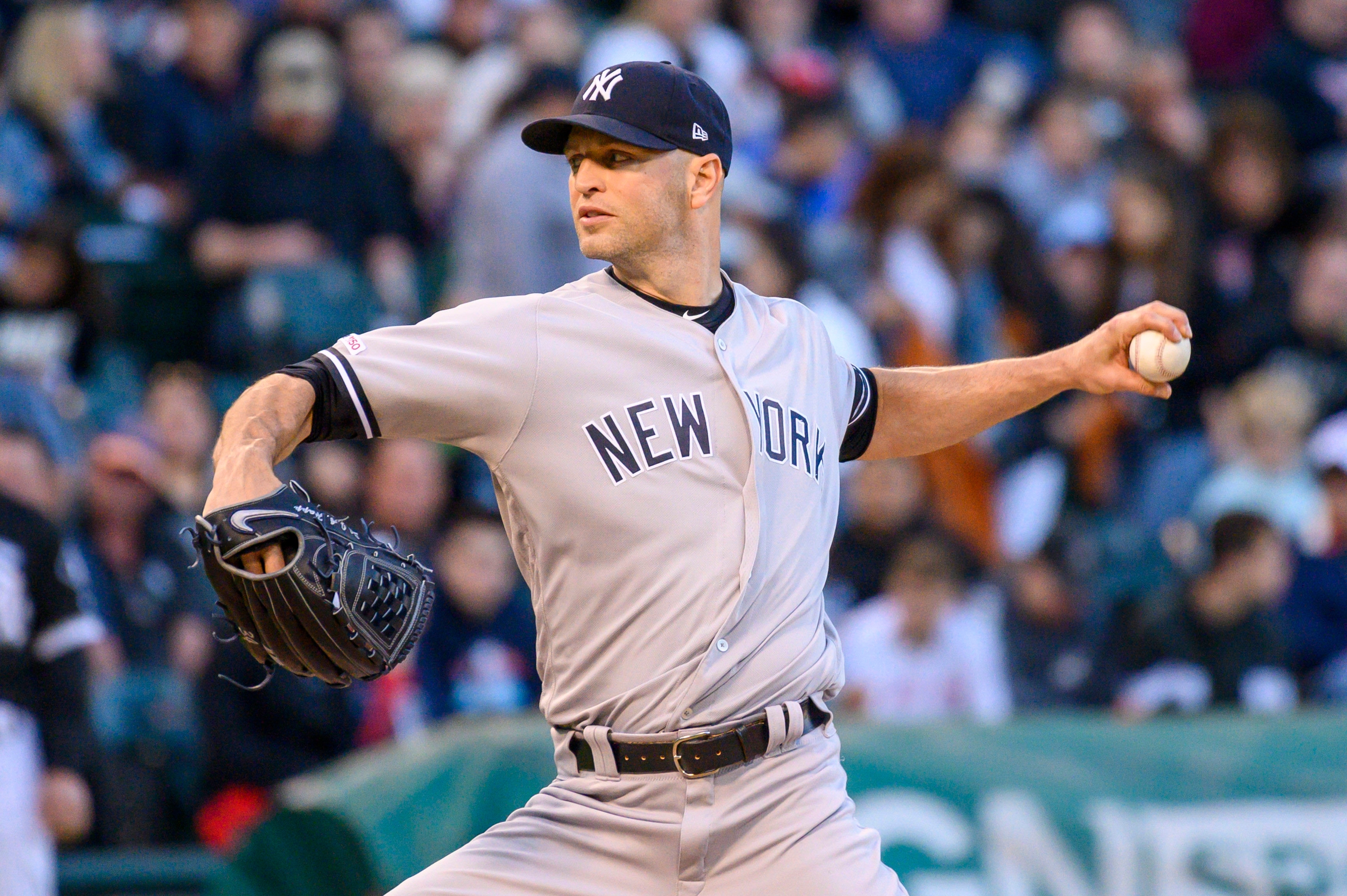 Jun 13, 2019; Chicago, IL, USA; New York Yankees starting pitcher J.A. Happ (34) pitches during the first inning against the Chicago White Sox at Guaranteed Rate Field. Mandatory Credit: Patrick Gorski-USA TODAY Sports / Patrick Gorski