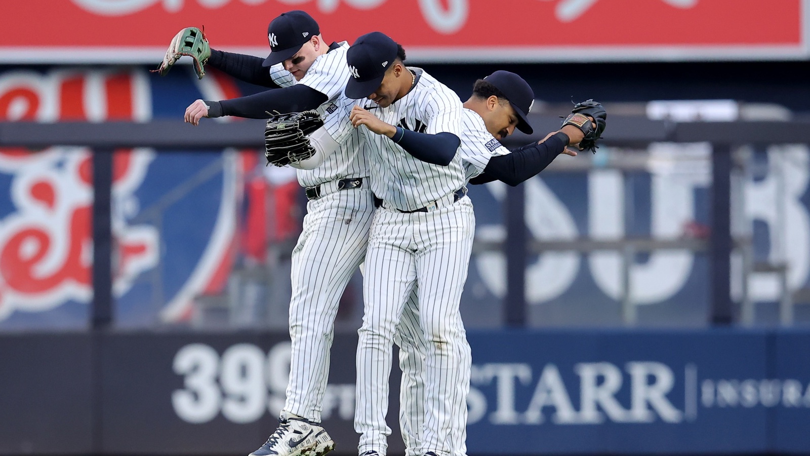 Yankees take Game 1 of doubleheader with 5-2 win over AngelsLuis Gil walked five, but held Los Angeles scoreless through five innings8/7/2024, 11:14 PMRobert SanchezFreelance Editorial ProducerNew York Yankees left fielder Alex Verdugo (24) and right fielder Juan Soto (22) and center fielder Trent Grisham (12) celebrate after defeating the Los Angeles Angels at Yankee Stadium. / Brad Penner-USA TODAY Sports