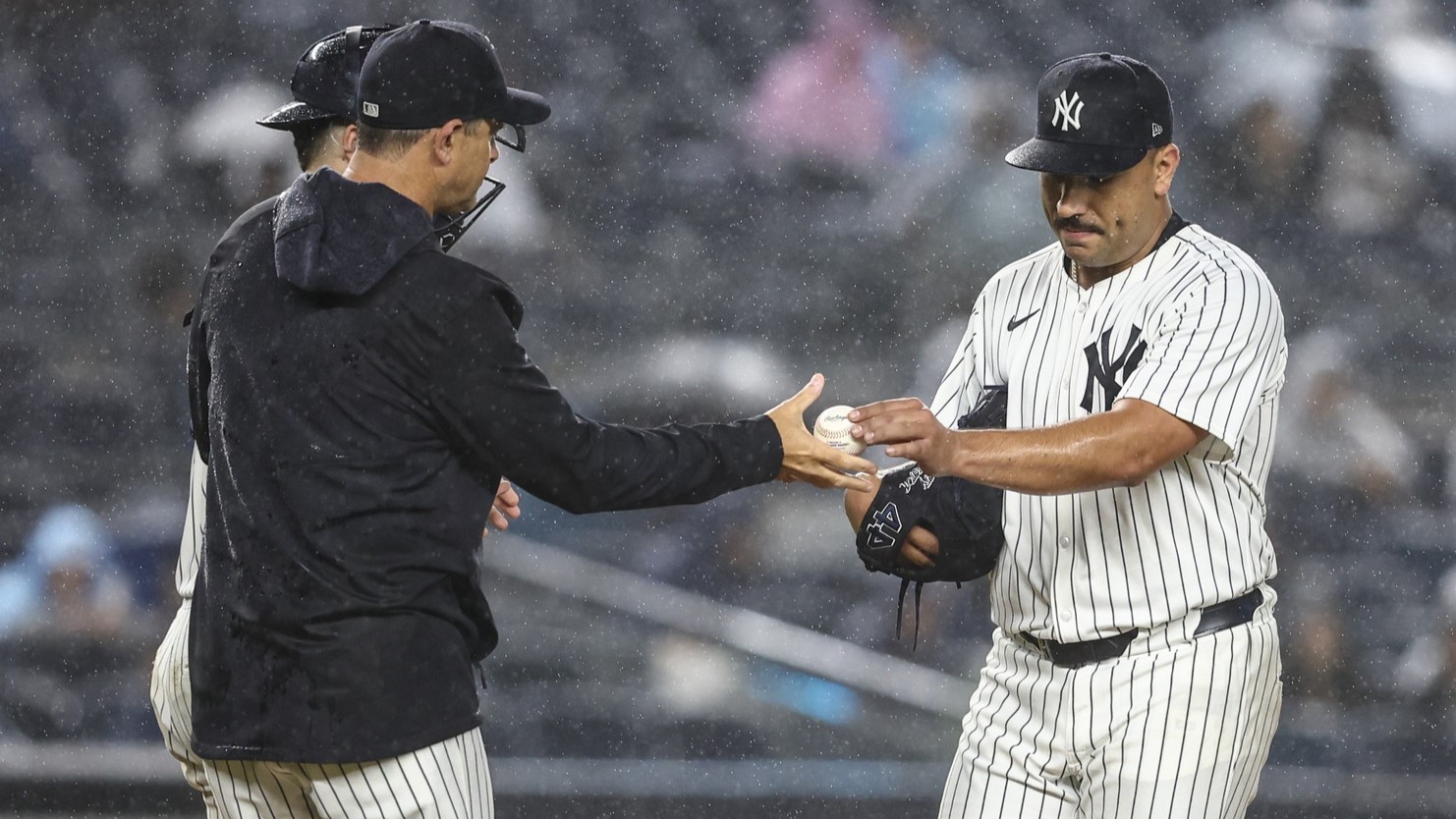 Nestor Cortes struggles, Yankees' offense wakes up late in 9-4 loss to AngelsYankees had just three hits and one run in the first seven innings8/9/2024, 2:09 AMPhillip MartinezEditorial ProducerAug 8, 2024; Bronx, New York, USA; New York Yankees starting pitcher Nestor Cortes (65) is taken out of the game by manager Aaron Boone (17) in the fifth inning against the Los Angeles Angels at Yankee Stadium. / Wendell Cruz-USA TODAY Sports