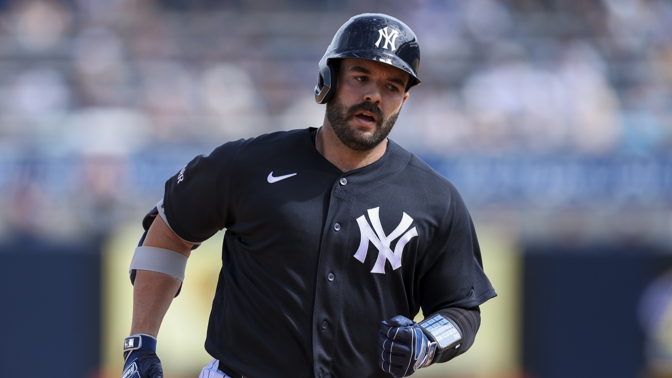 Feb 28, 2026; Tampa, Florida, USA; New York Yankees catcher Austin Wells (28) runs the bases after hitting a two-run home run against the Toronto Blue Jays in the sixth inning during spring training at George M. Steinbrenner Field. / Nathan Ray Seebeck-Imagn Images