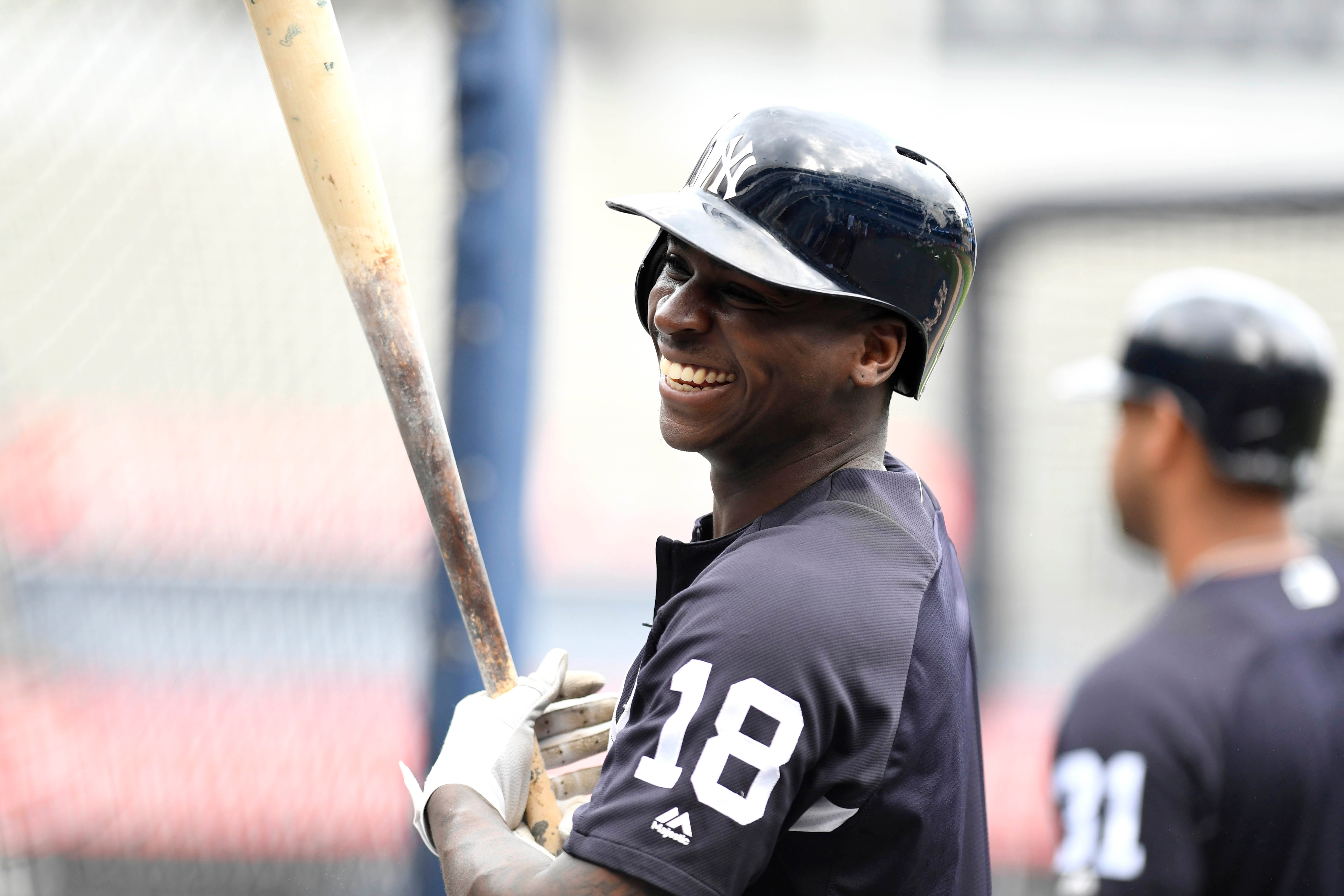 Oct 2, 2018; Bronx, NY, USA; New York Yankees shortstop Didi Gregorius during workouts one day before the 2018 American League Wild Card playoff baseball game at Yankee Stadium. Mandatory Credit: Danielle Parhizkaran/NorthJersey.com via USA TODAY Sports / Danielle Parhizkaran