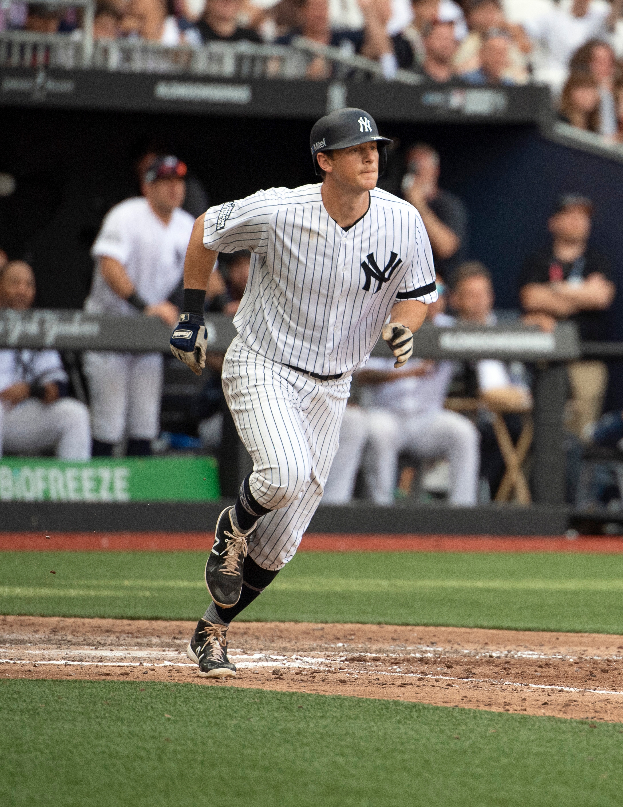 New York Yankees second baseman DJ LeMahieu runs for a double during the seventh inning of the game between the Boston Red Sox and the New York Yankees at London Stadium. / Steven Flynn/USA TODAY Sports