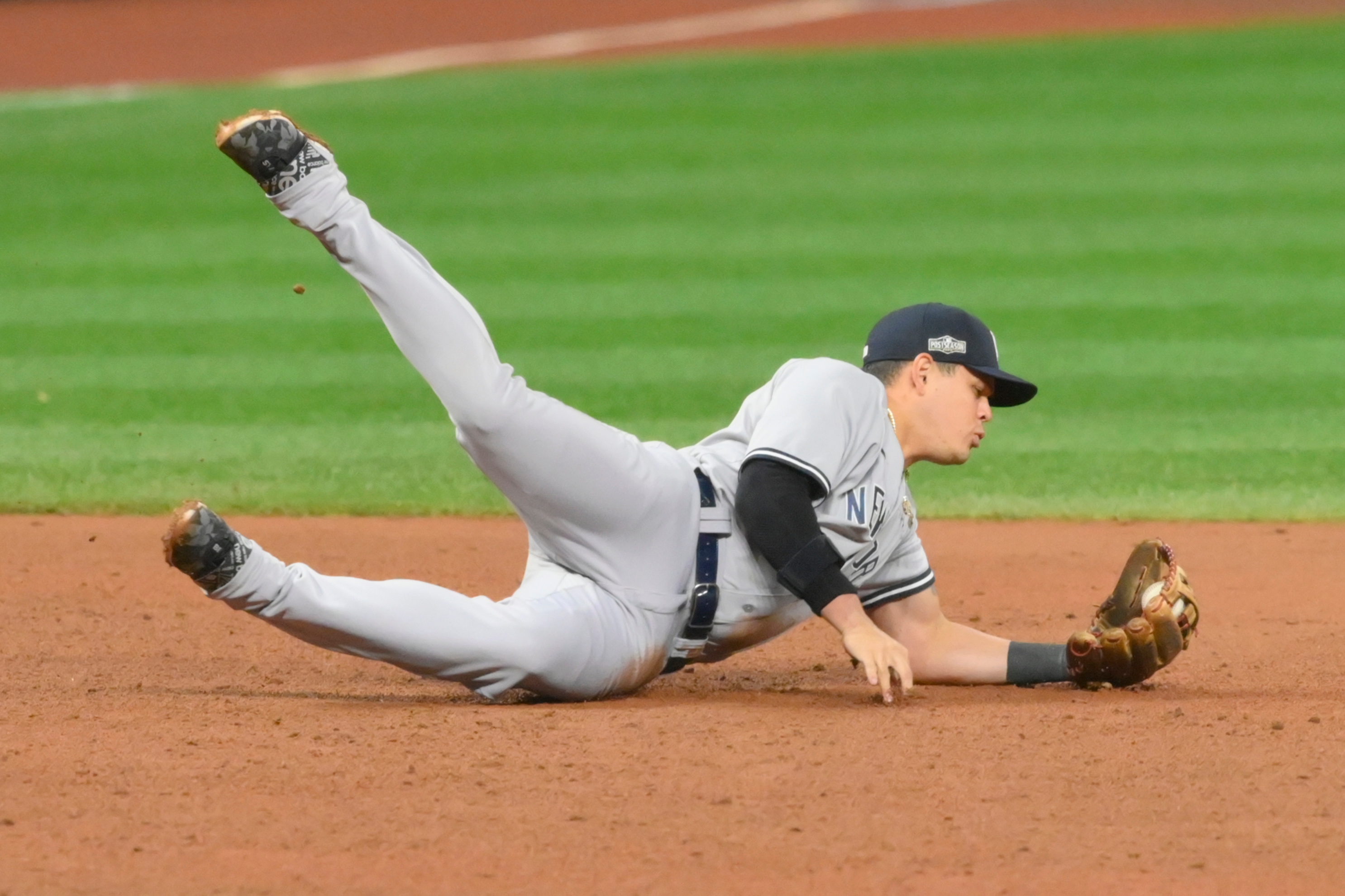 Yankees' Gio Urshela, Clint Frazier named Gold Glove finalistsUrshela gets nod at 3B, Frazier in RF10/22/2020, 7:03 PMCoby GreenFreelance Editorial ProducerSep 30, 2020; Cleveland, Ohio, USA; New York Yankees third baseman Gio Urshela (29) makes a diving stop on a ground ball before starting a double play in a the eighth inning against the Cleveland Indians at Progressive Field. Mandatory Credit: David Richard-USA TODAY Sports / © David Richard-USA TODAY Sports