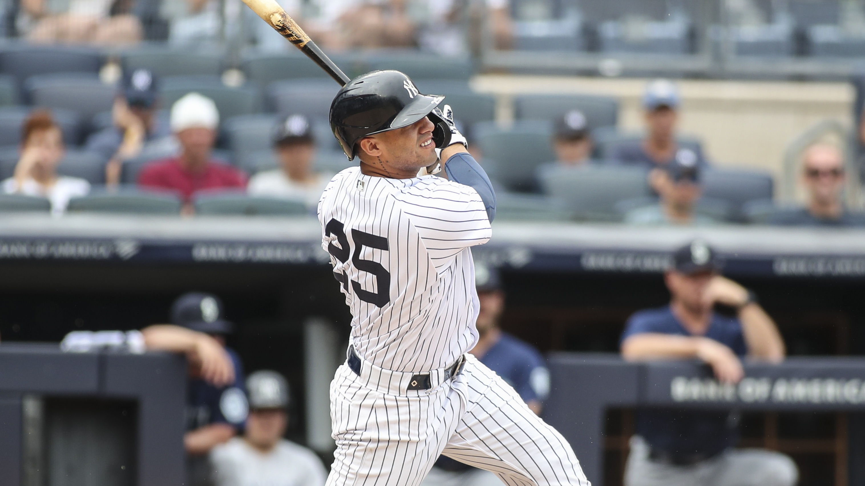 Yankees place Gleyber Torres on 10-day IL with left thumb sprainTorres left Sunday's game early after sliding into second base8/9/2021, 8:23 PMRyan MorikFreelance Editorial ProducerAug 8, 2021; Bronx, New York, USA; New York Yankees shortstop Gleyber Torres (25) hits a single in the fourth inning against the Seattle Mariners at Yankee Stadium. / © Wendell Cruz-USA TODAY Sports