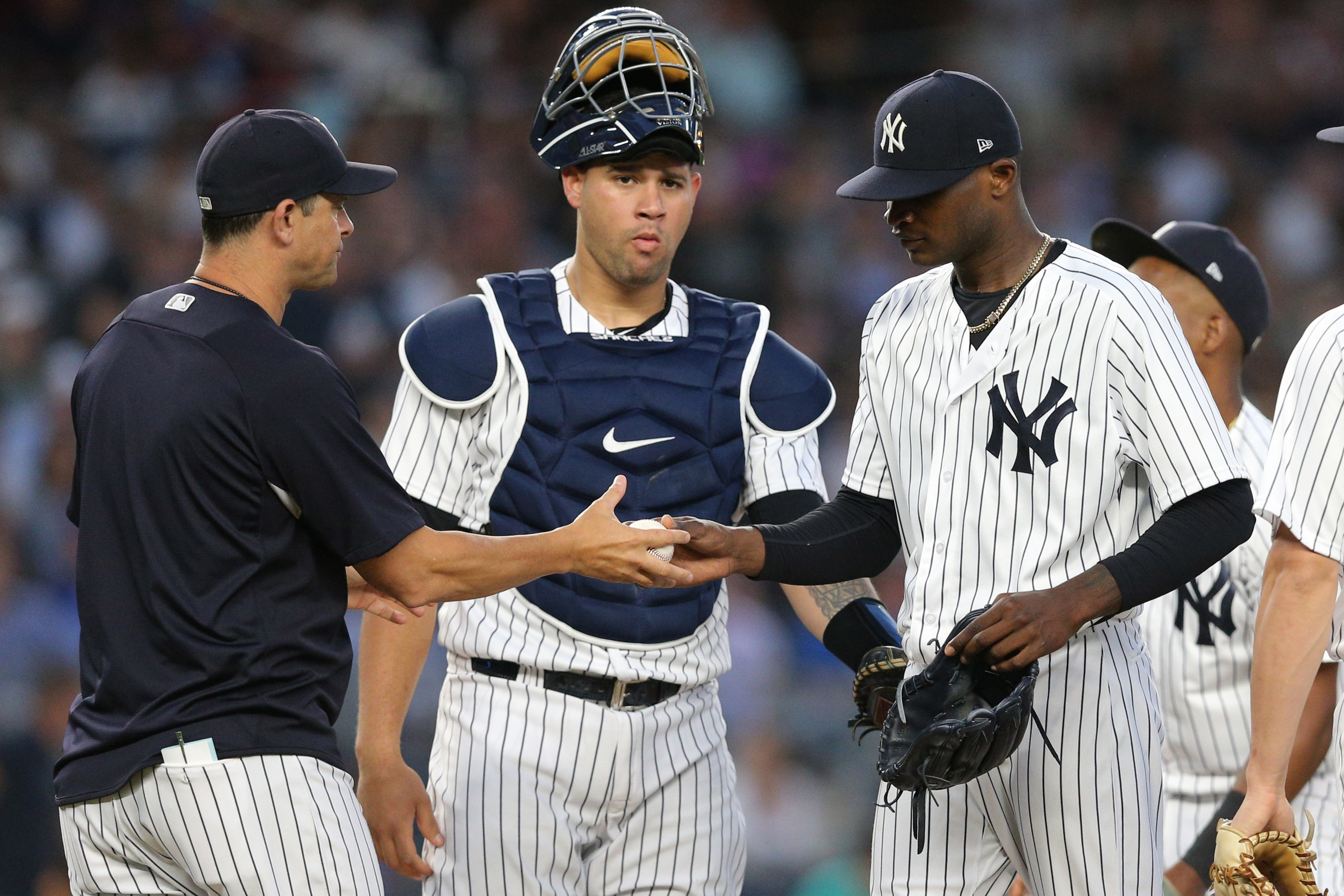 Yankees have seen enough of RHP Domingo GermanLuis Cessa will take his place in the rotation7/21/2018, 3:00 PMJul 20, 2018; Bronx, NY, USA; New York Yankees manager Aaron Boone relieves pitcher Domingo German (65) during the fourth inning against the New York Mets at Yankee Stadium. Mandatory Credit: Brad Penner-USA TODAY Sports / Brad Penner