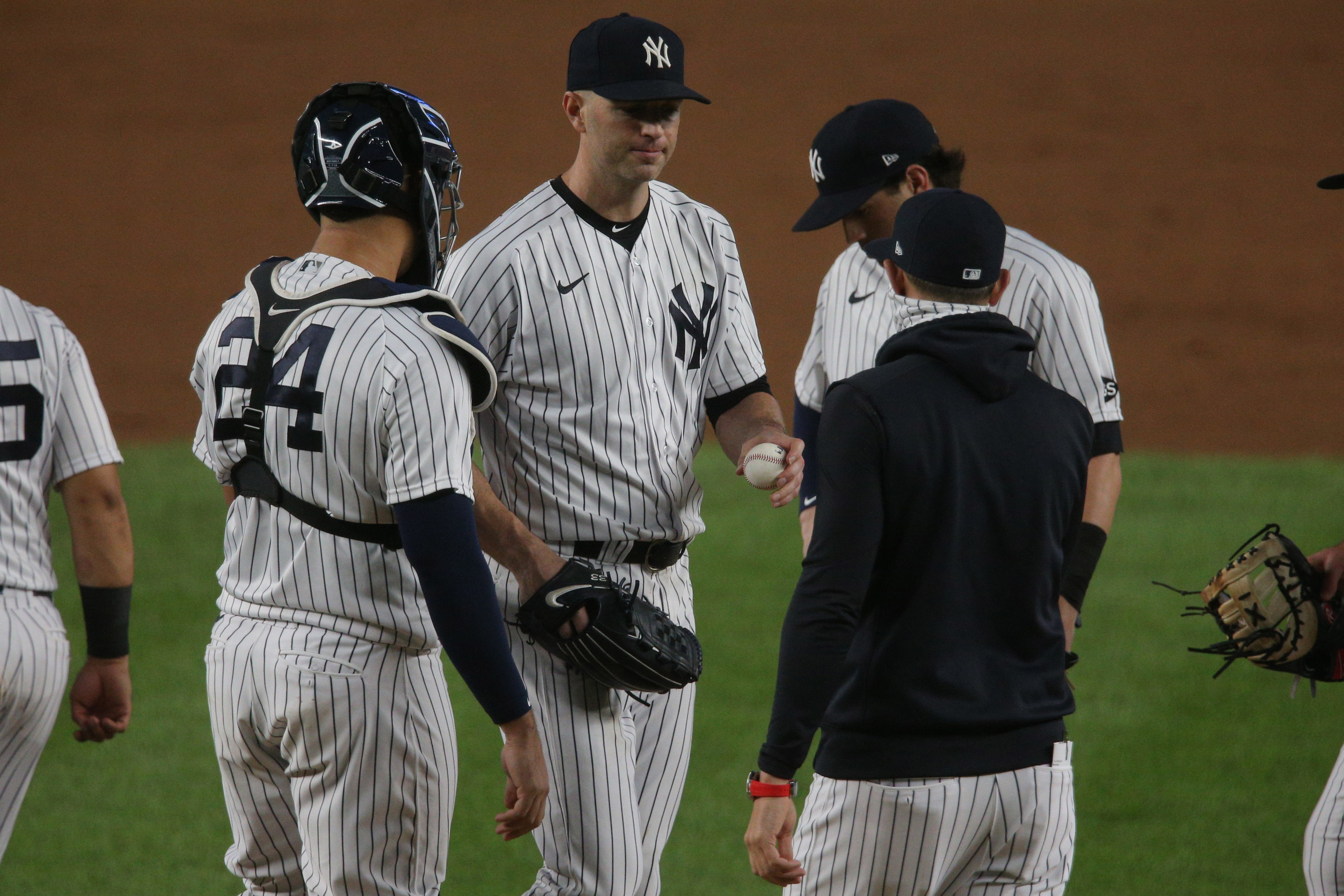 Yankees' J.A. Happ discusses bounce-back outing vs. Red Sox, meeting with Aaron BooneHapp met with Boone after missing last scheduled start8/17/2020, 4:26 AMGarrett StepienFreelance Editorial ProducerAug 16, 2020; Bronx, New York, USA; New York Yankees starting pitcher J.A. Happ (33) hands the ball to manager Aaron Boone after being relieved during the sixth inning against the Boston Red Sox at Yankee Stadium. Mandatory Credit: Brad Penner-USA TODAY Sports / © Brad Penner-USA TODAY Sports