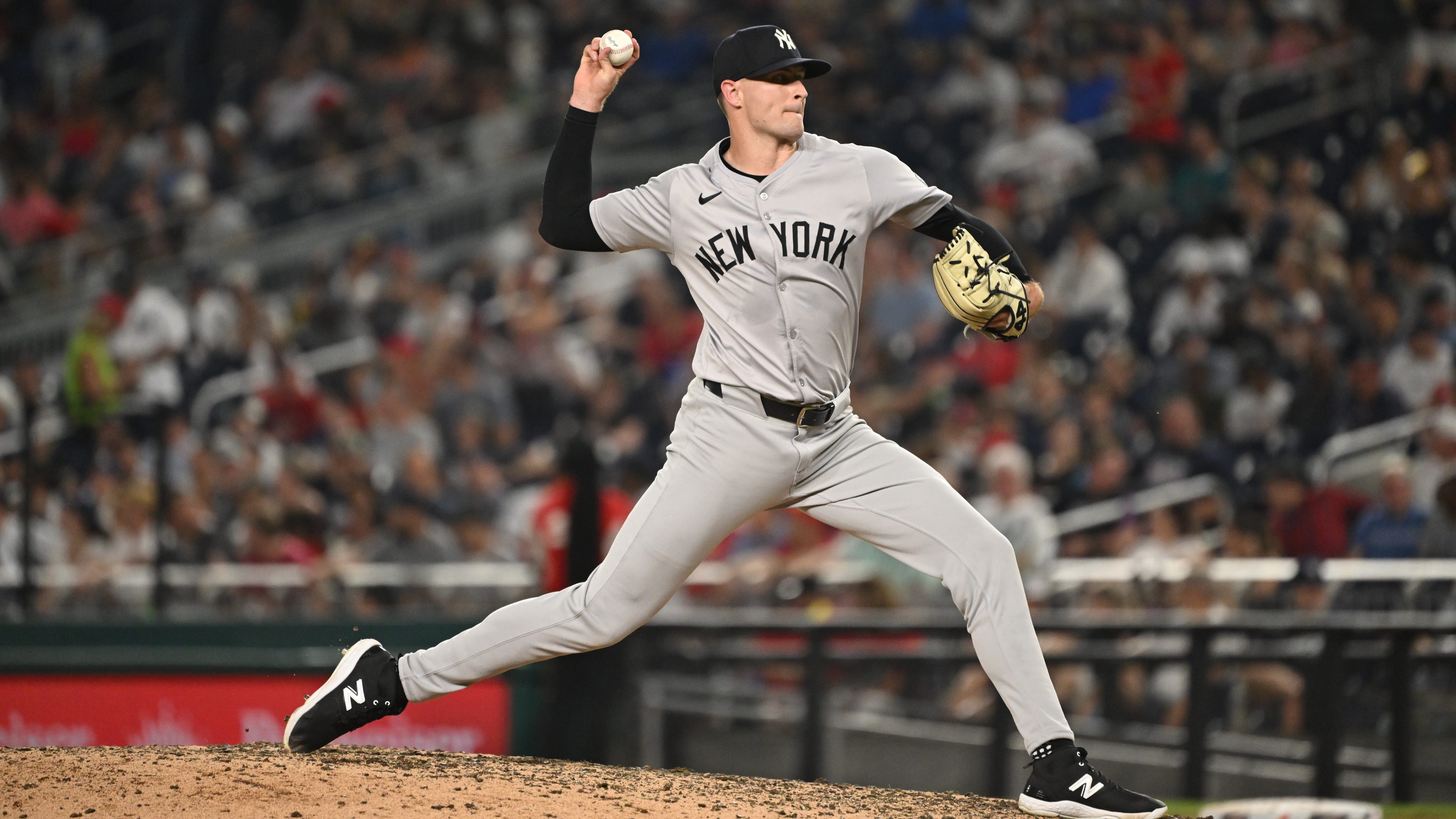 Yankees' Jake Cousins exits Thursday's game with right pec tightnessCousins threw six pitches but his velocity was way down9/19/2024, 10:36 PMPhillip MartinezEditorial ProducerAug 28, 2024; Washington, District of Columbia, USA; New York Yankees relief pitcher Jake Cousins (61) throws a pitch against the Washington Nationals during the sixth inning at Nationals Park. / Rafael Suanes-Imagn Images