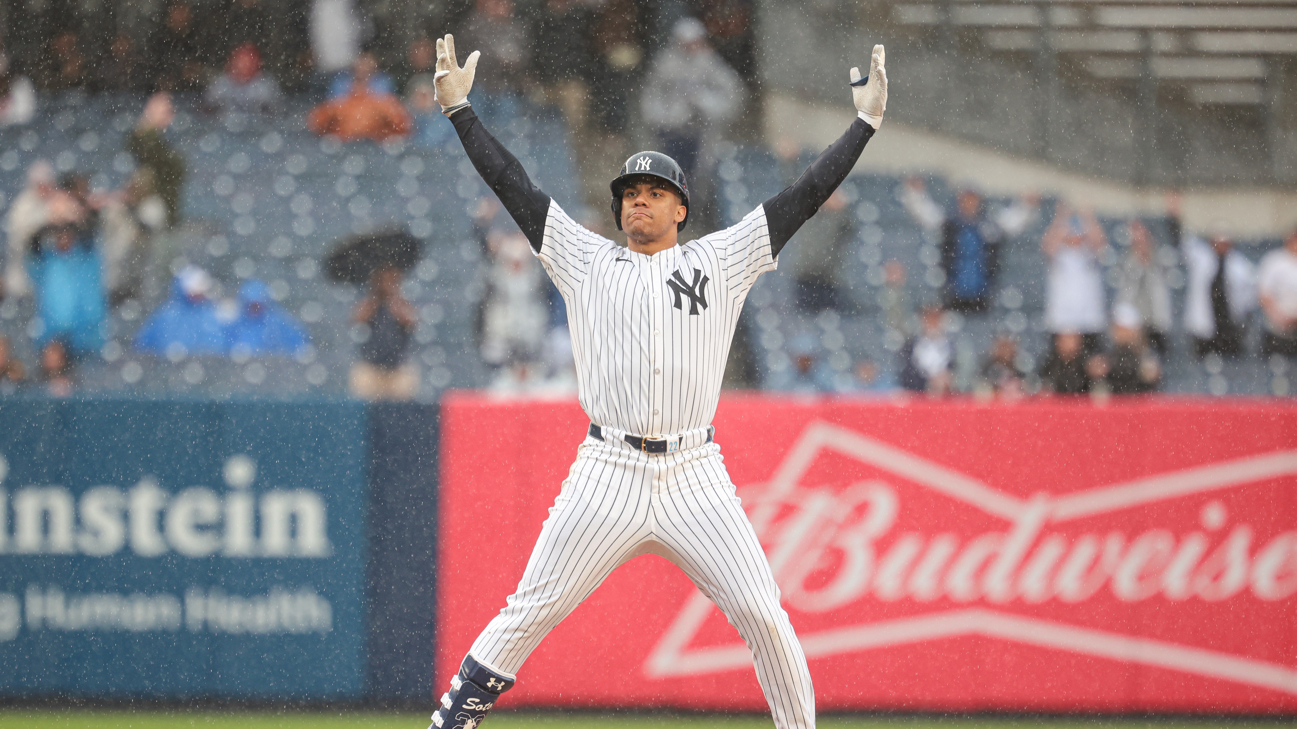 Yankees' Juan Soto, Hal Steinbrenner open to mid-season contract extension talksHal: 'We want to see him here for the rest of his career'5/16/2024, 10:00 PMPhillip MartinezEditorial ProducerMay 5, 2024; Bronx, New York, USA; New York Yankees right fielder Juan Soto (22) reacts after his three RBI double during the seventh inning against the Detroit Tigers at Yankee Stadium. Mandatory Credit: Vincent Carchietta-USA TODAY Sports / © Vincent Carchietta-USA TODAY Sports