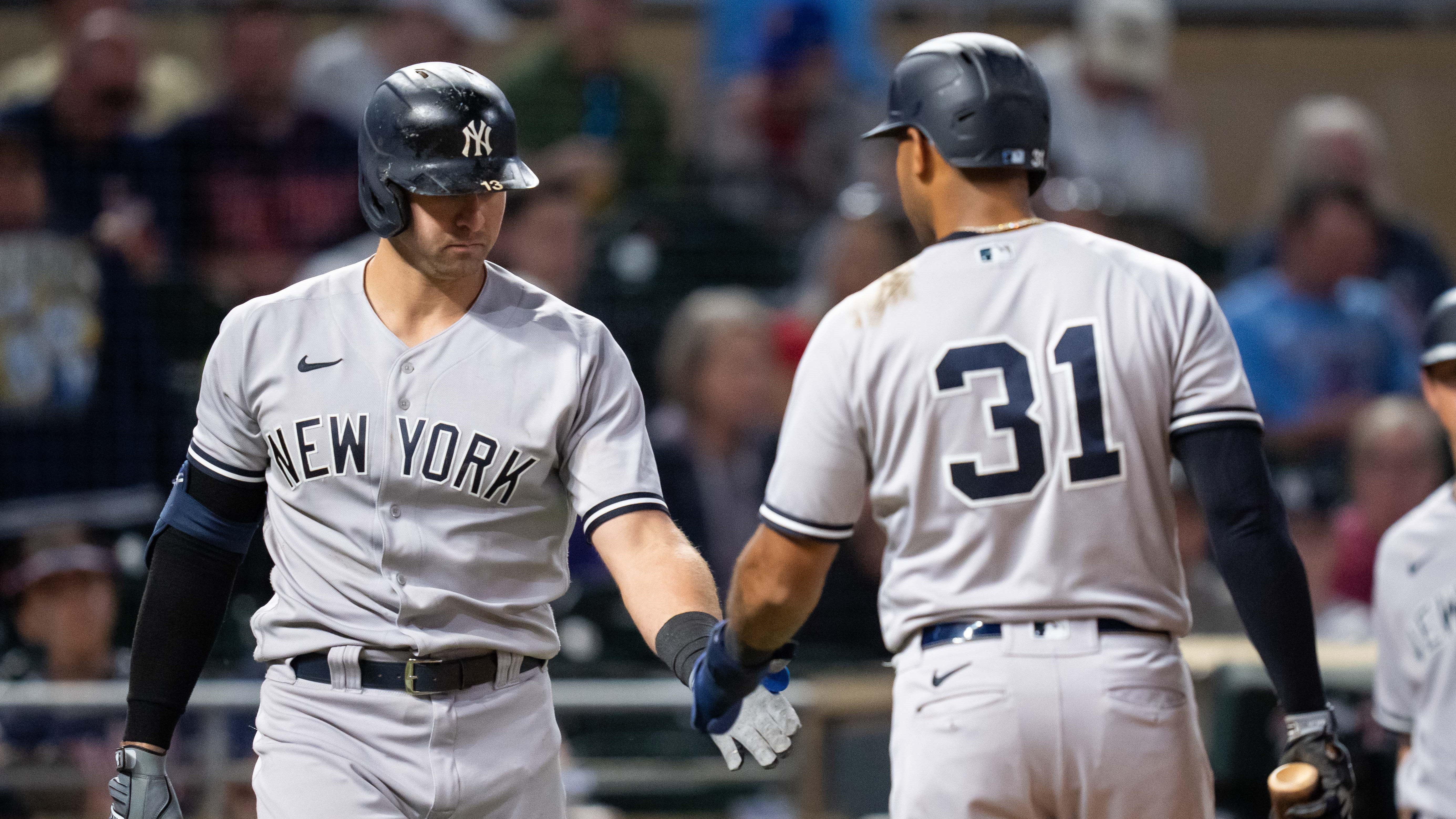 Yankees Mailbag: What value would Joey Gallo or Aaron Hicks have on the trade block?SNY's Andy Martino responds to and breaks down answers to Yankees questions from readers6/10/2022, 6:24 PMAndy MartinoMLB InsiderJun 7, 2022; Minneapolis, Minnesota, USA; New York Yankees left fielder Joey Gallo (13) congratulates left fielder Aaron Hicks (31) after scoring against the Minnesota Twins in the eighth inning at Target Field. / Brad Rempel-USA TODAY Sports