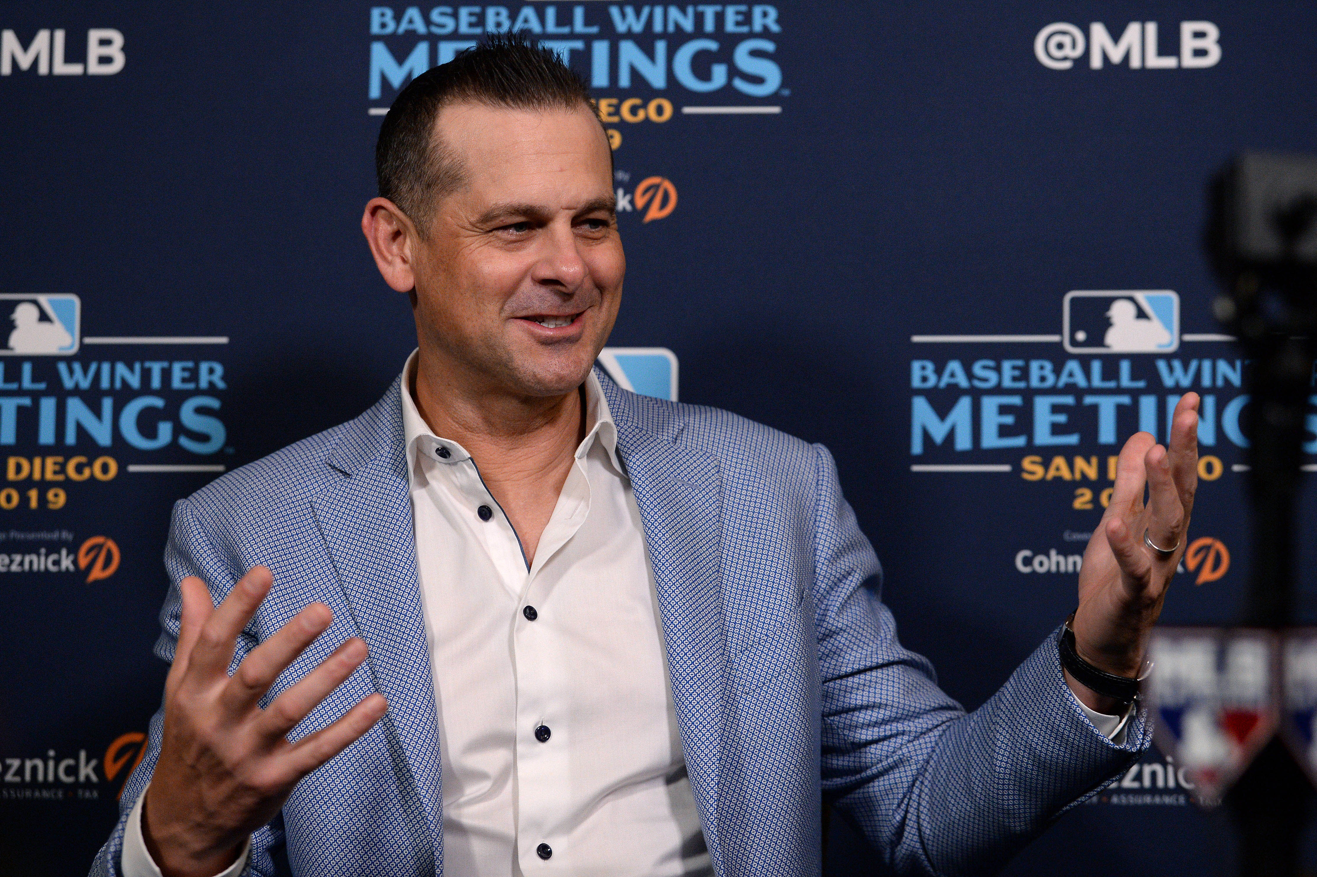 Dec 10, 2019; San Diego, CA, USA; New York Yankees manager Aaron Boone speaks to the media during the MLB Winter Meetings at Manchester Grand Hyatt. Mandatory Credit: Orlando Ramirez-USA TODAY Sport / Orlando Ramirez