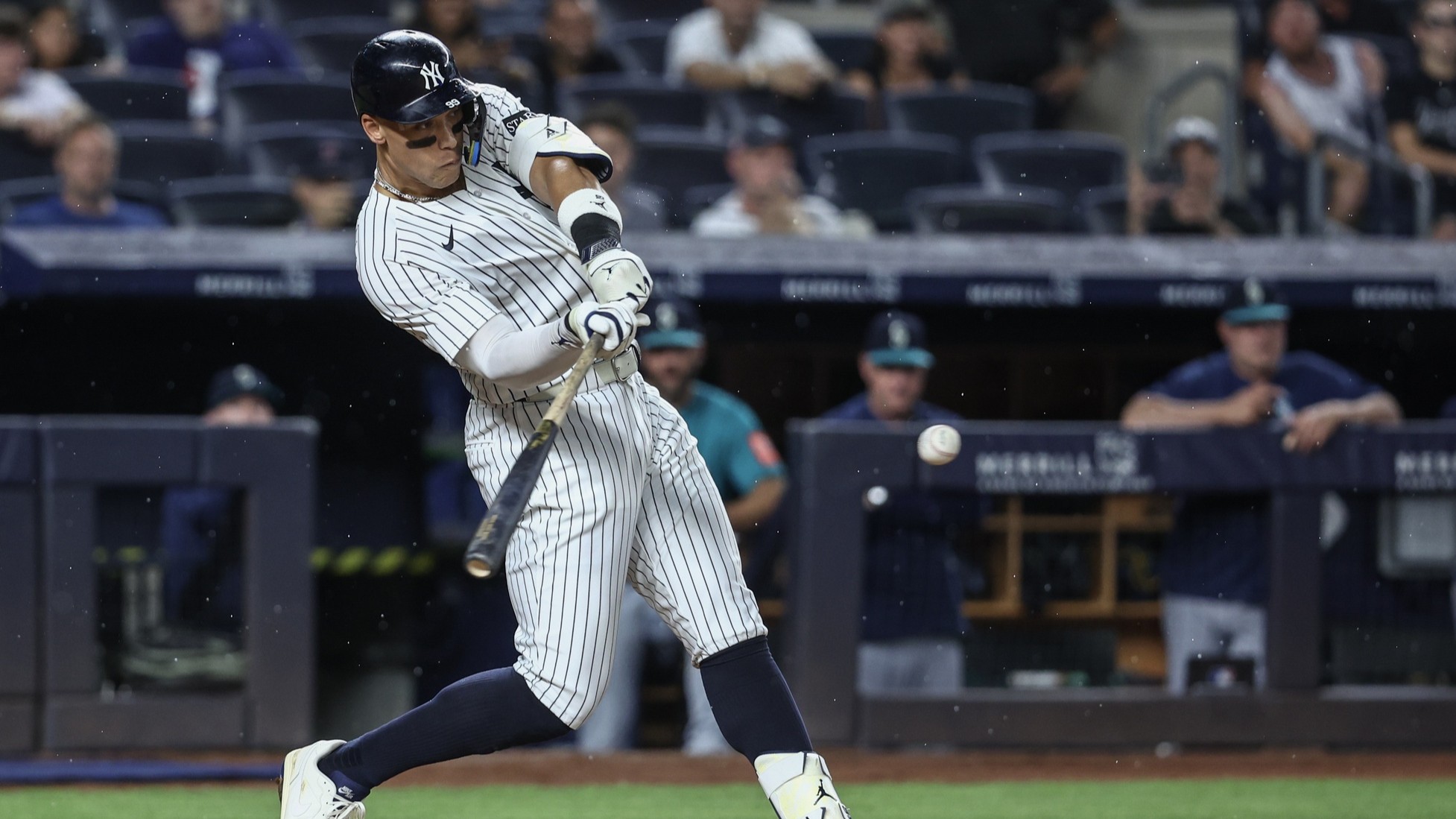 Yankees end Bryan Woo's no-hit bid, rally to beat Mariners, 6-5, in extra inningsAaron Judge's first career walk-off sac fly seals win on Thursday7/11/2025, 2:32 AMPhillip MartinezEditorial ProducerJul 9, 2025; Bronx, New York, USA; New York Yankees right fielder Aaron Judge (99) hits an RBI double in the sixth inning against the Seattle Mariners at Yankee Stadium. / Wendell Cruz-Imagn Images