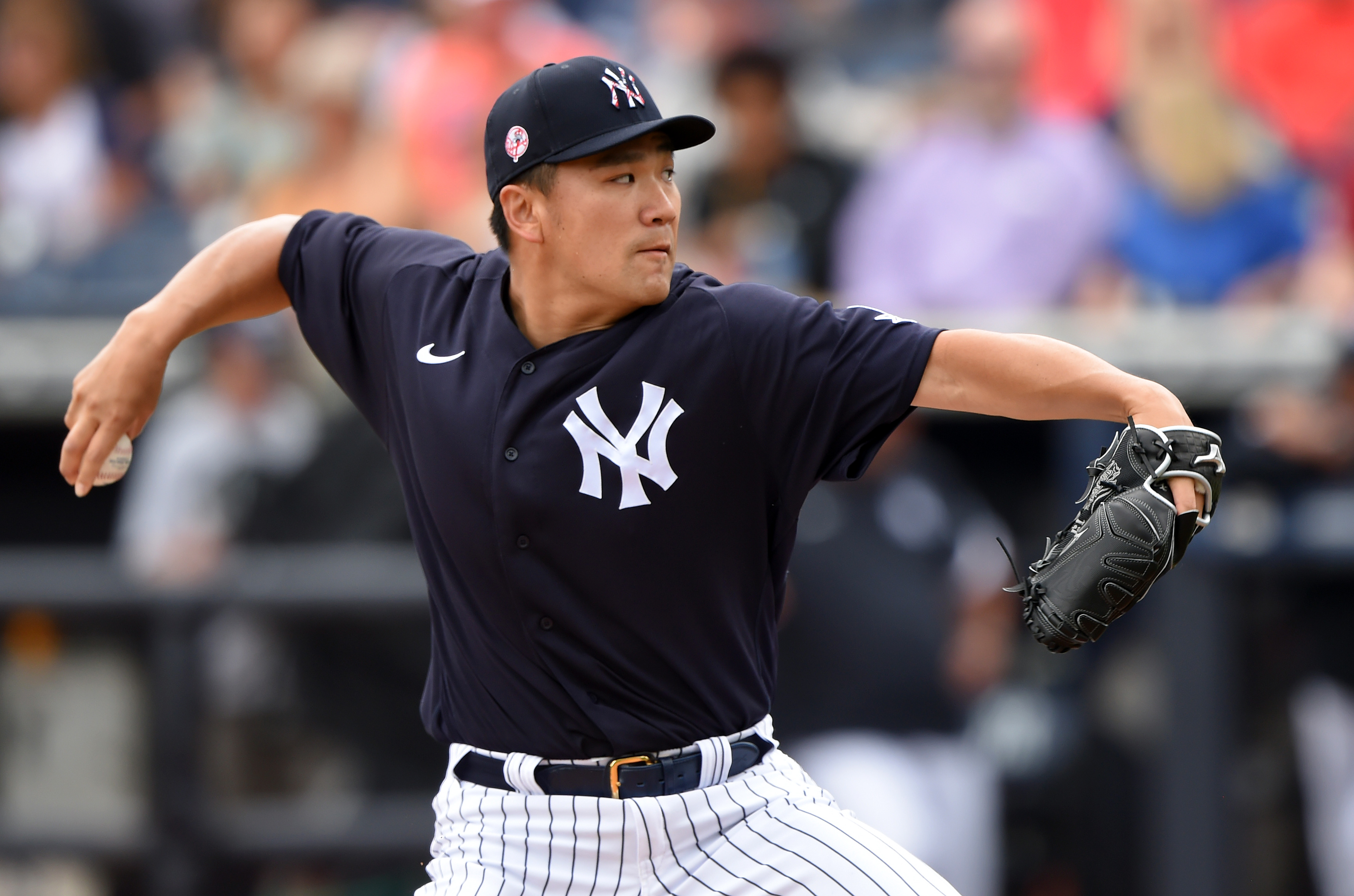 Feb 26, 2020; Tampa, Florida, USA; New York Yankees starting pitcher Masahiro Tanaka (19) pitching against the Washington Nationals during the first inning at George M. Steinbrenner Field. Mandatory Credit: John David Mercer-USA TODAY Sports / John David Mercer