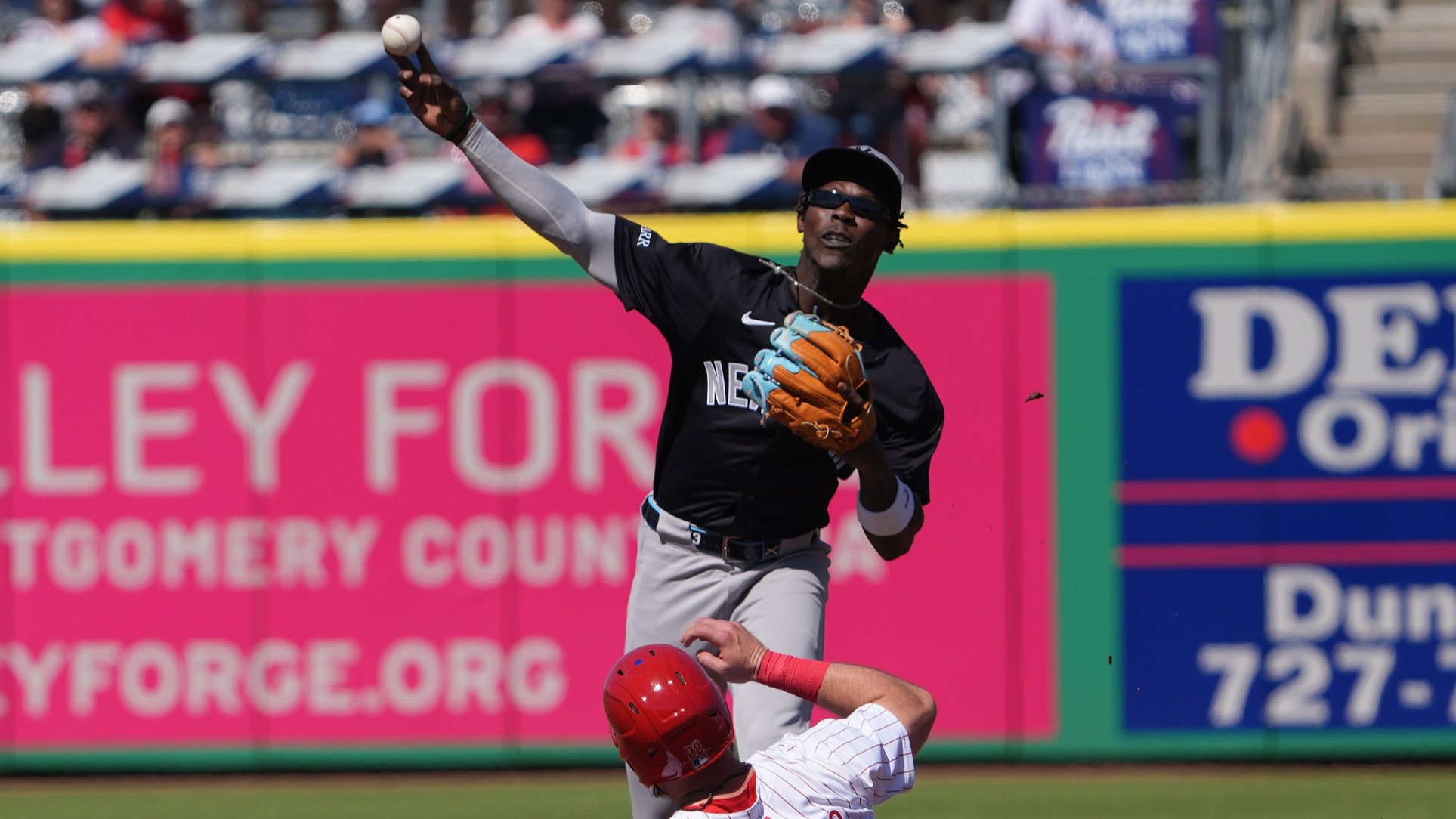 Yankees Notes: Jazz Chisholm Jr. lauds tandem with Anthony Volpe; Jasson Dominguez has work to do in leftYankees, Phillies played to 7-7 tie on Thursday2/28/2025, 12:33 AMPhillip MartinezEditorial ProducerNew York Yankees outfielder Jasson Dominguez (24) leaps for and misses a ball hit by Philadelphia Phillies shortstop Edmundo Sosa (33) during the third inning at BayCare Ballpark. / Dave Nelson-Imagn Images