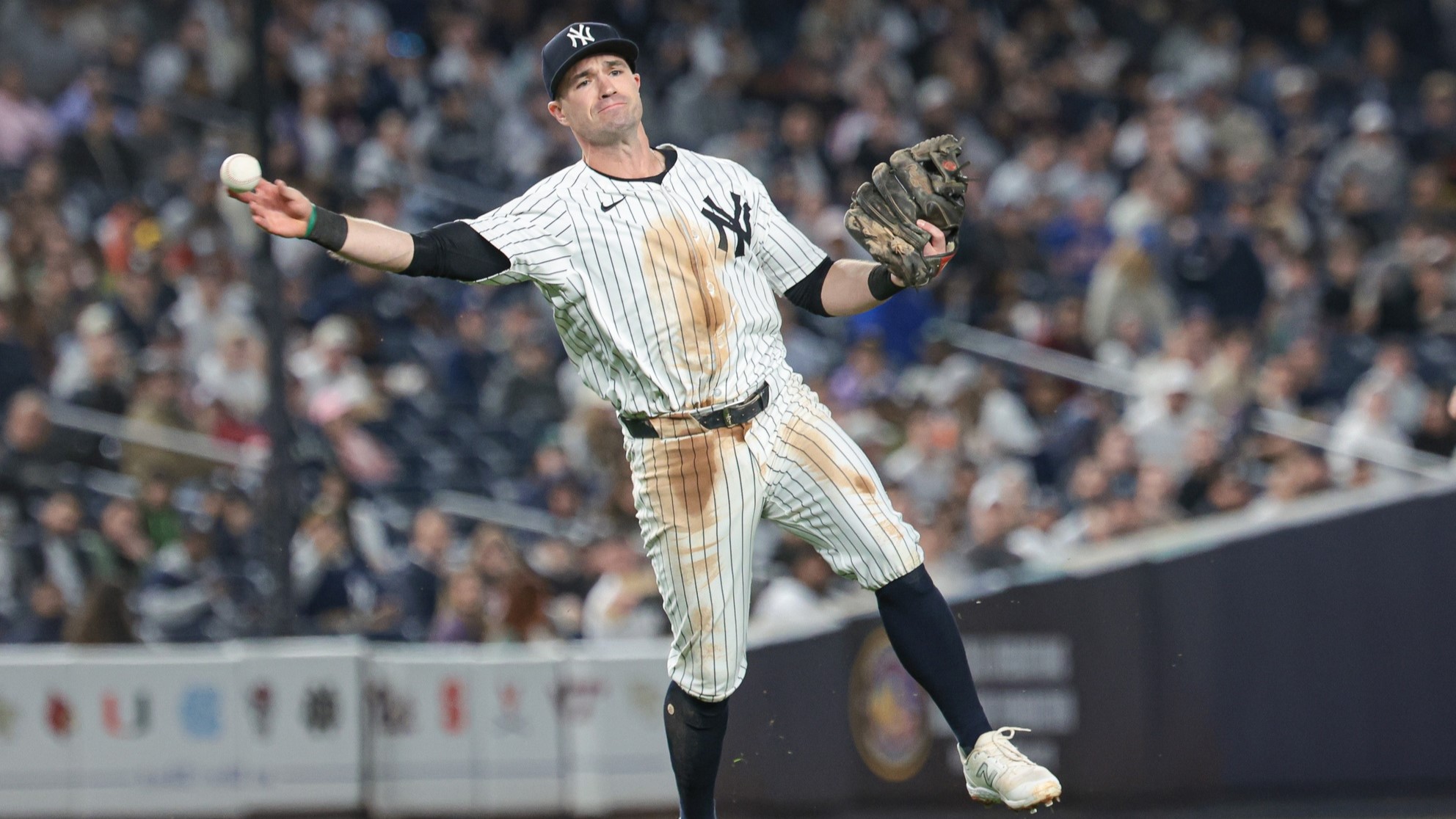 Yankees place Jon Berti on IL, DFA Josh MaciejewskiINF Kevin Smith and RHP Ron Marinaccio called up4/13/2024, 7:44 PMPhillip MartinezEditorial ProducerApr 9, 2024; Bronx, New York, USA; New York Yankees third baseman Jon Berti (19) throws the ball to first base for an out during the fourth inning against the New York Yankees at Yankee Stadium. / Vincent Carchietta-USA TODAY Sports